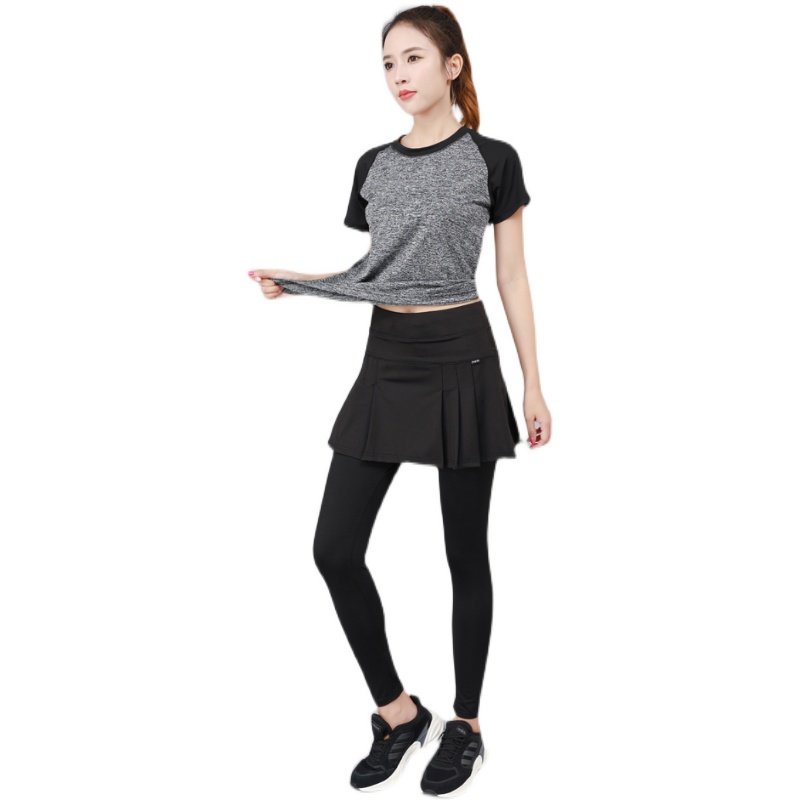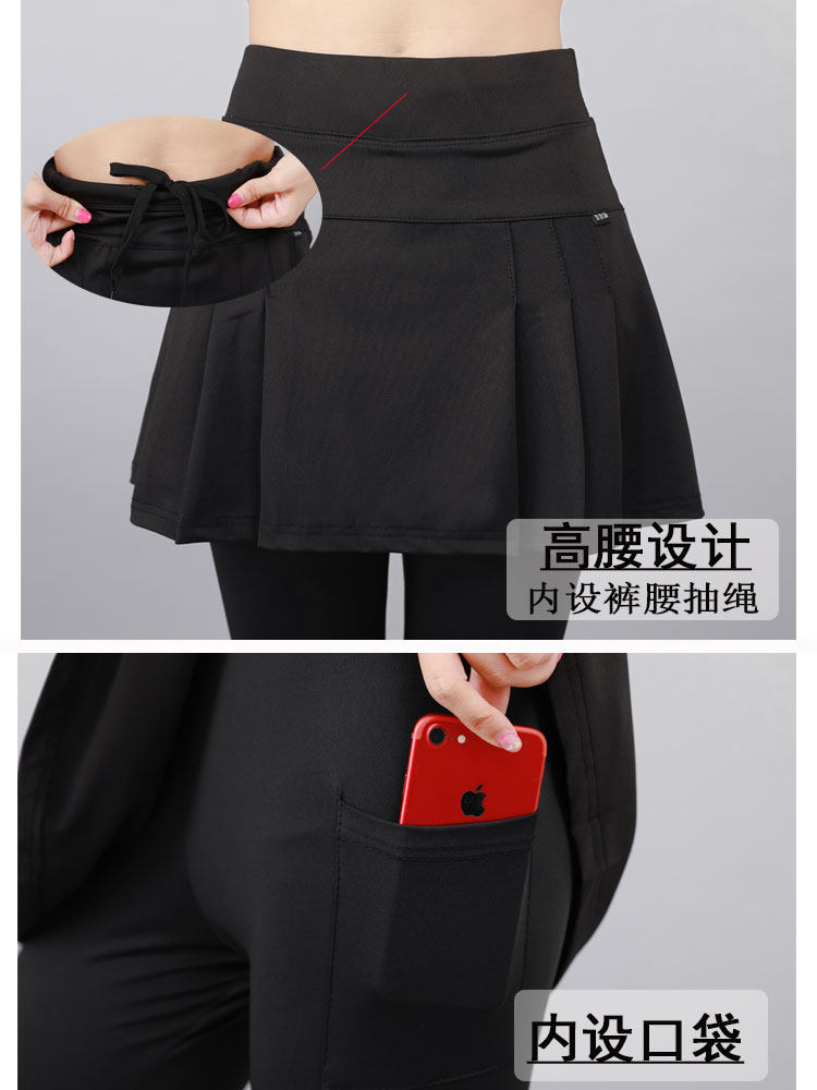 📚 运动裤裙女速干假两件羽毛球网球短裙瑜伽健身高腰紧身九分长裤子