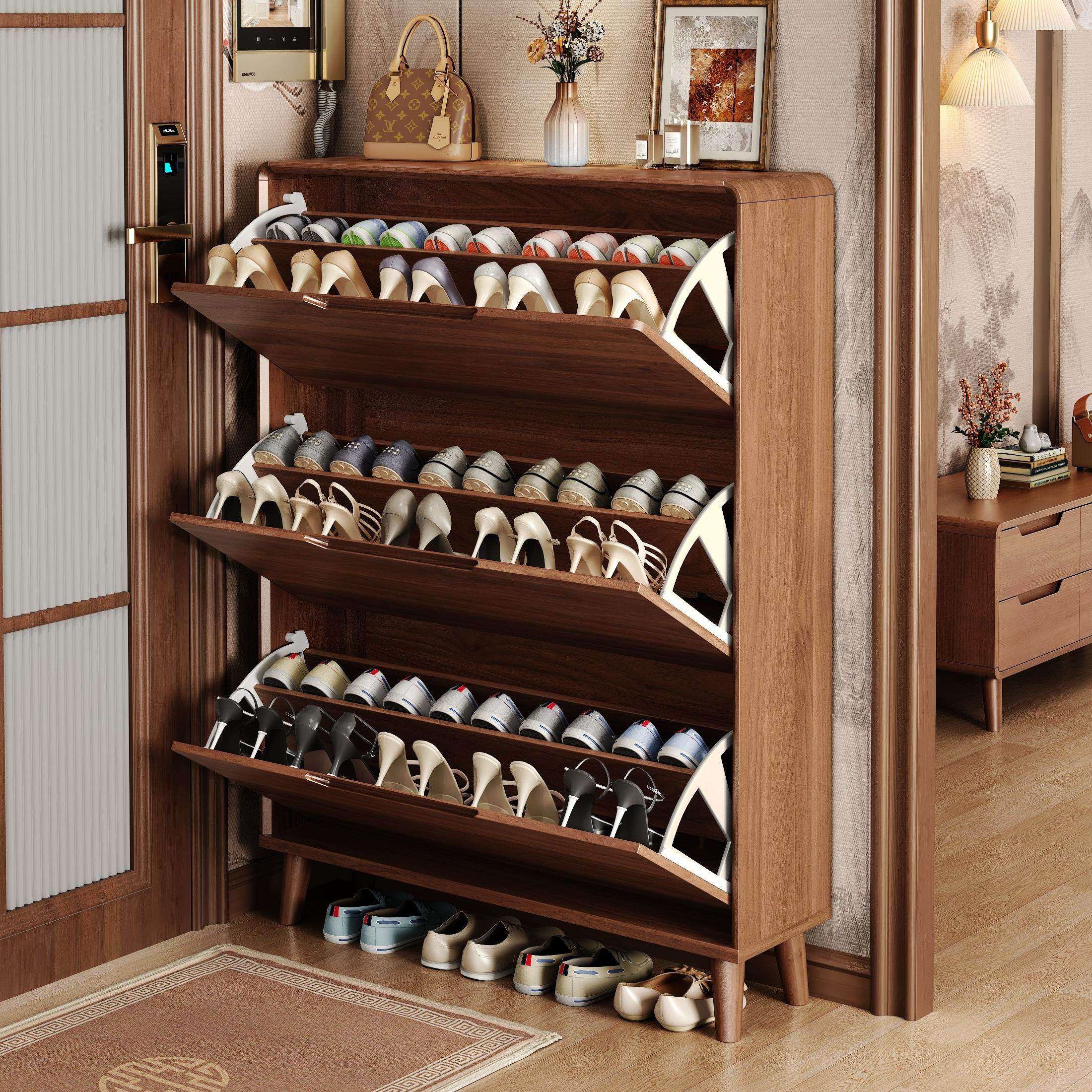 📚 超薄窄款翻斗鞋柜入口门楼道靠墙进门口新中式鞋架大容量胡桃