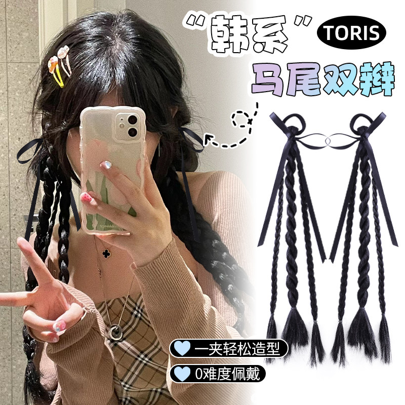 📚 韩版丝带扭扭辫女假发辫甜酷拳击辫发绳马尾双辫麻花辫头绳发饰
