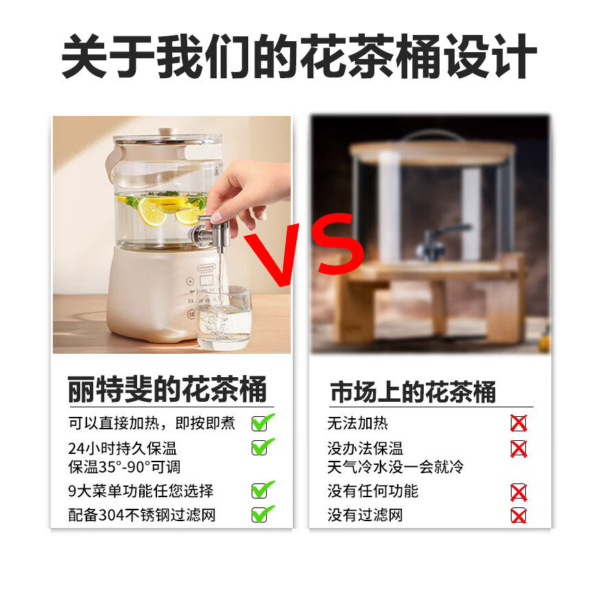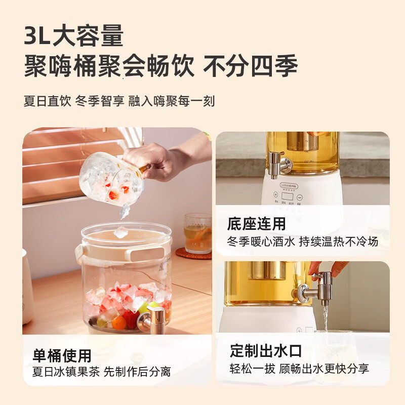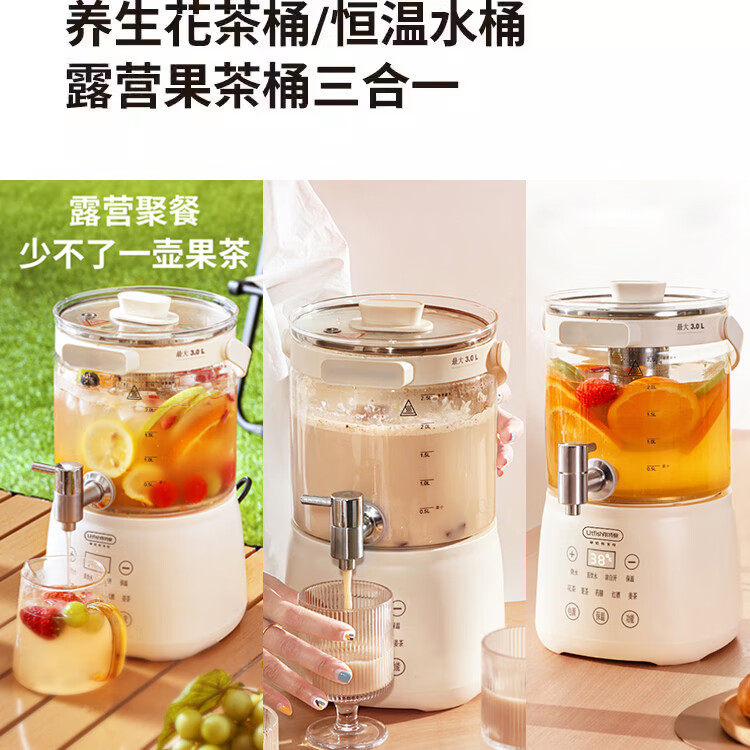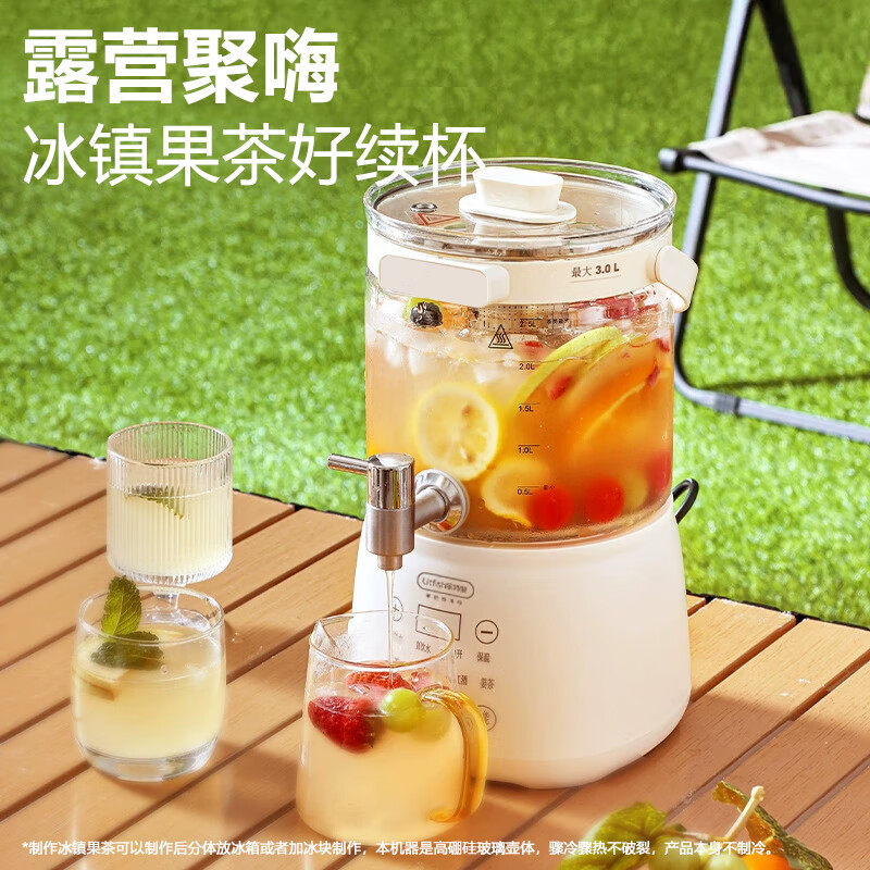 📚 丽特斐分体式养生壶夏天派对果茶桶3L大容量花茶桶米白色