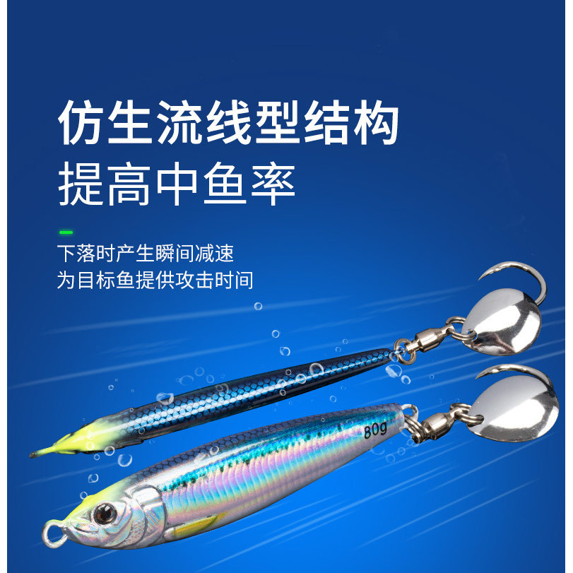📚 日本杰克小精灵铁板鲅鱼马鲛黄鲣饵60/80g远投路亚饵旋转亮片单钩