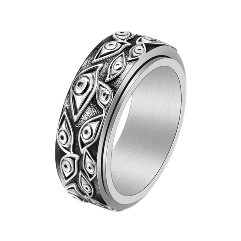 📚 信仰之眼可旋转戒指欧美风嘻哈朋克穿搭男女钛钢复古恶魔之睛指环