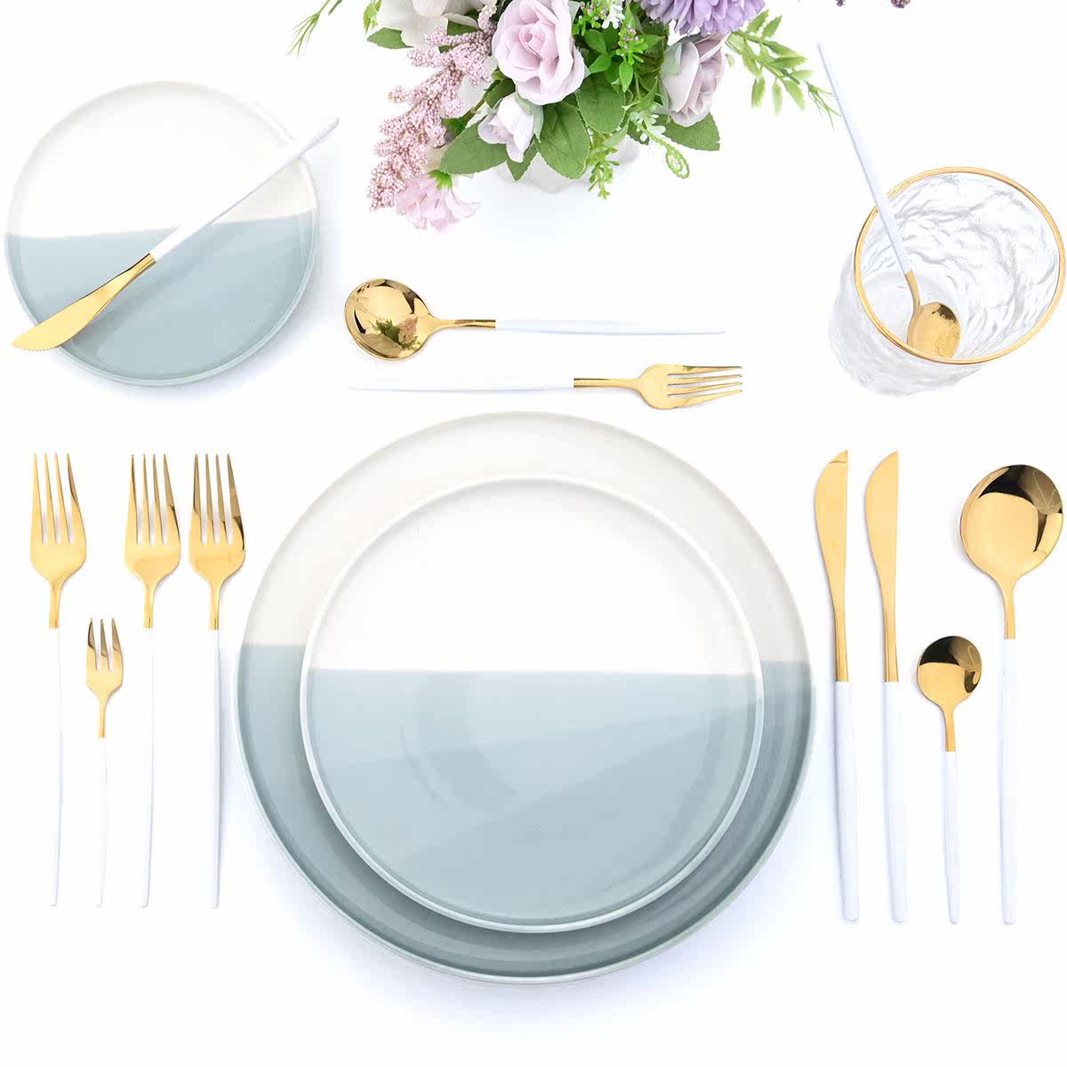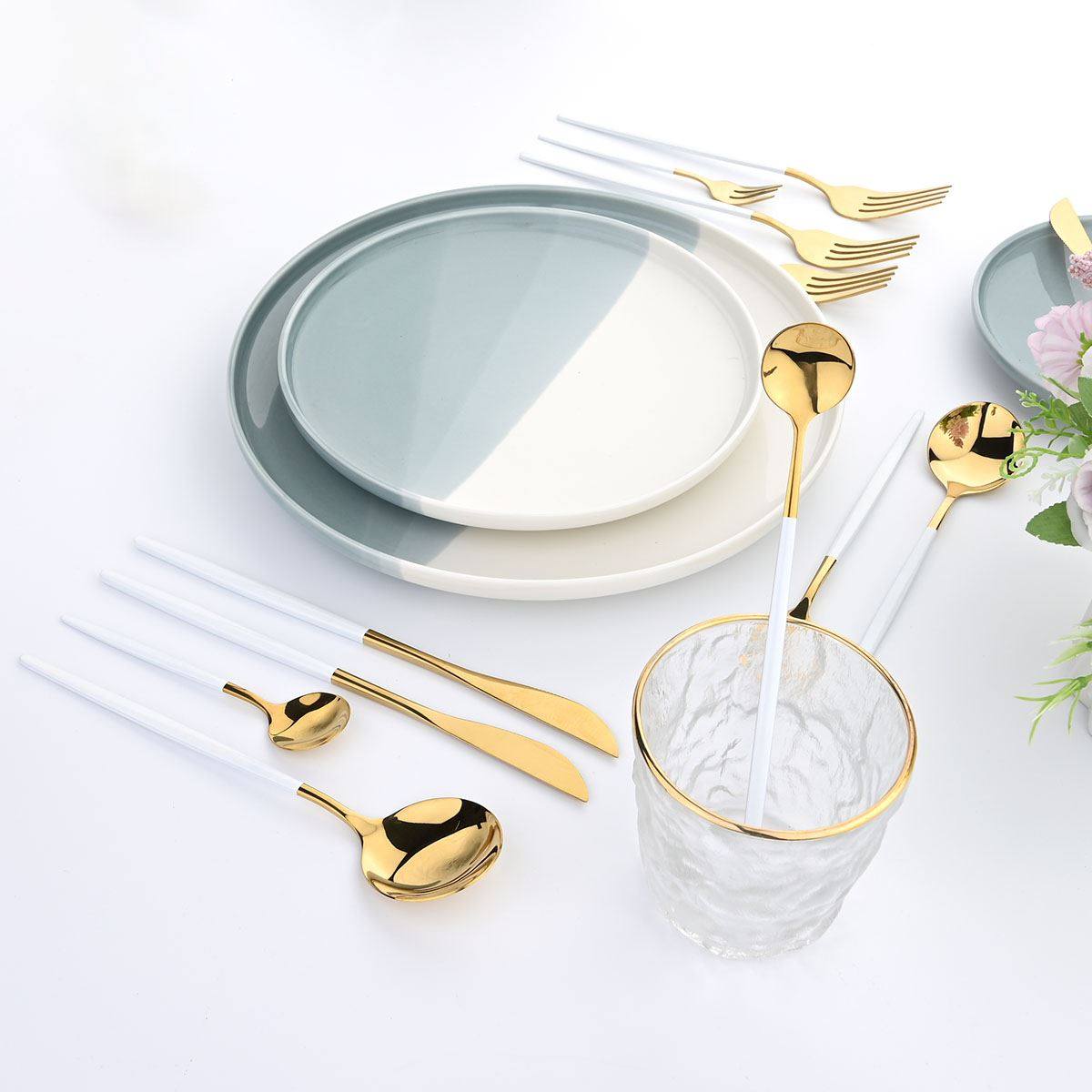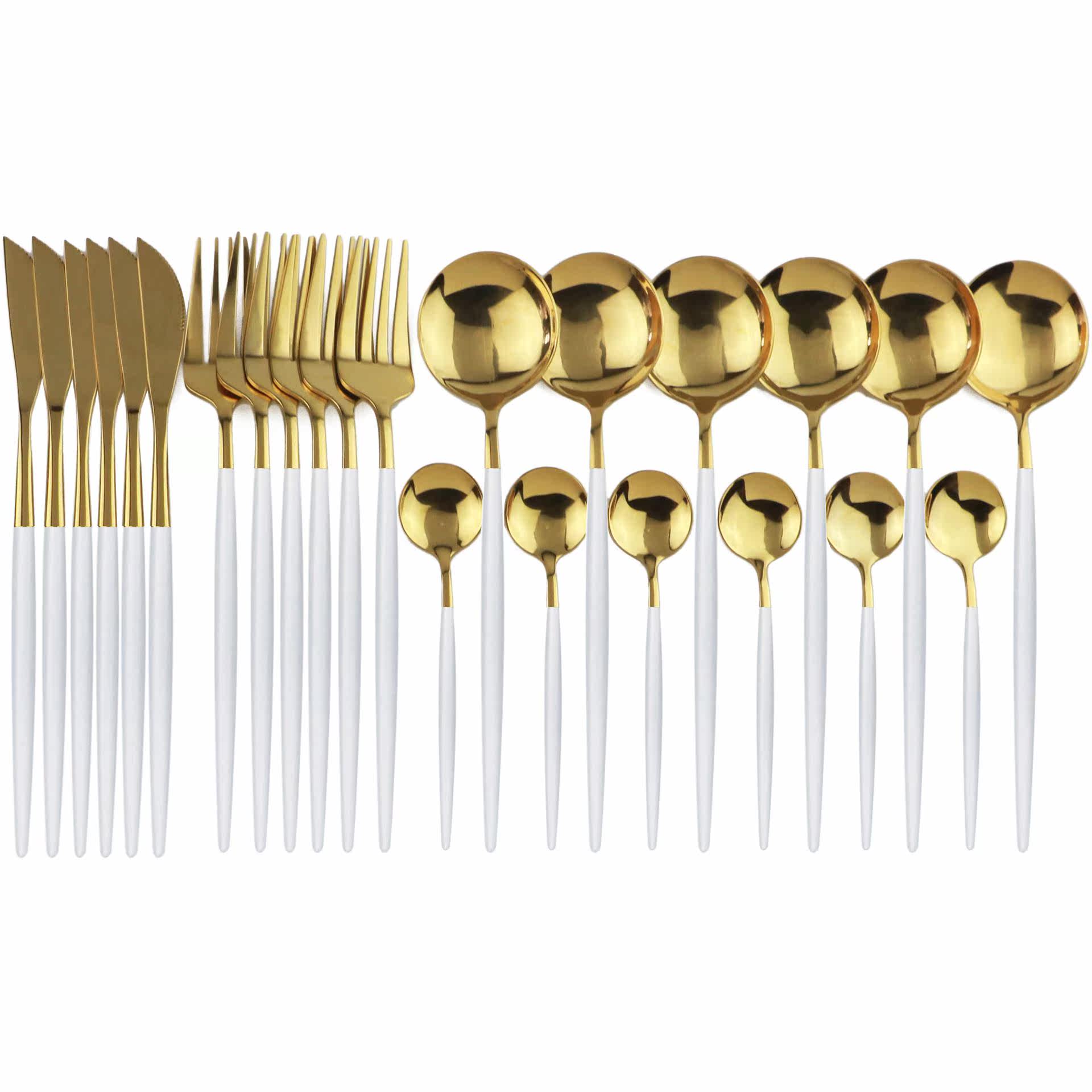 📚 24Pcs Stainless Steel Cutlery Set Kitchen Silverware White