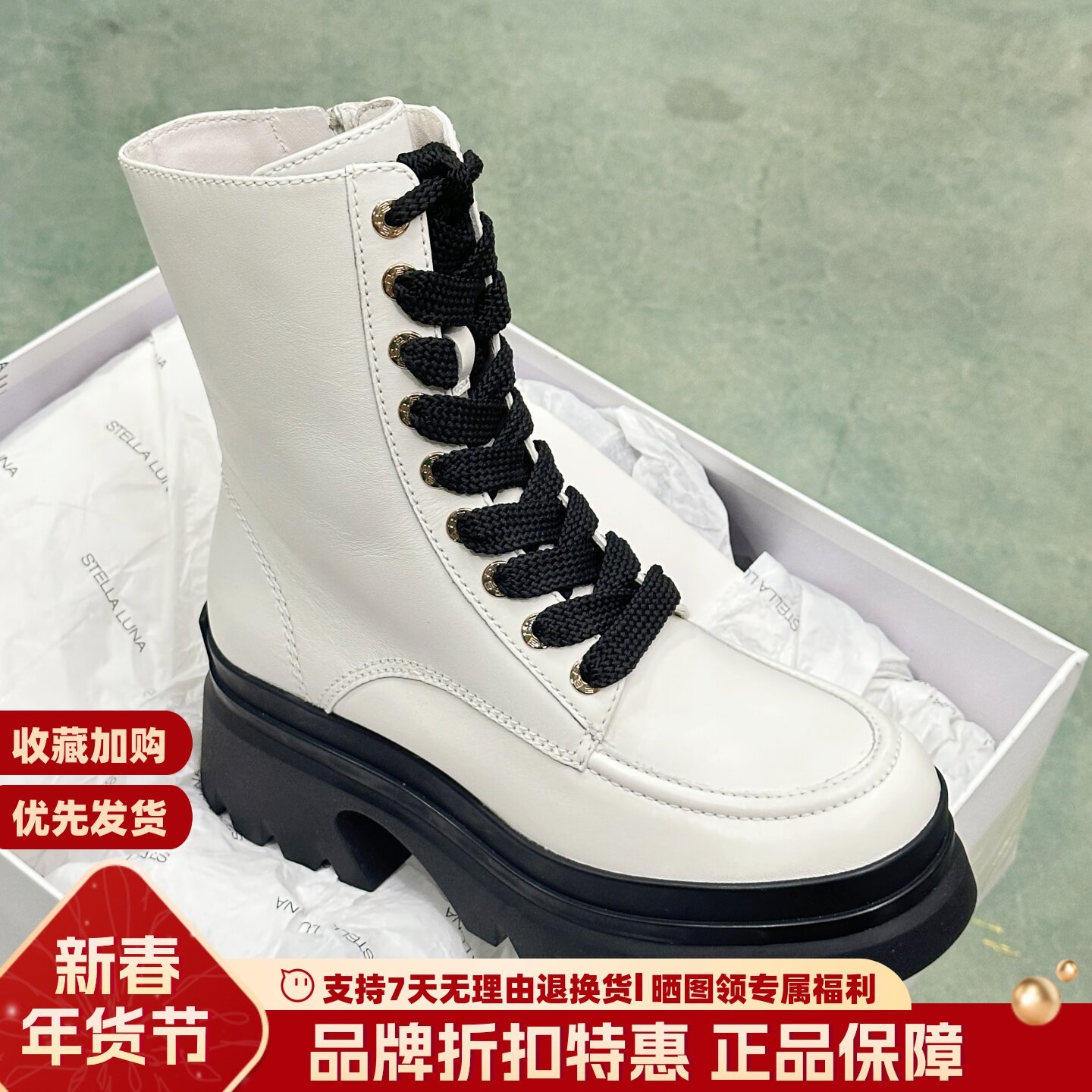 📚 STELLA LUNA露娜欧美风圆头厚底短靴侧拉链马丁靴机车靴SL321044