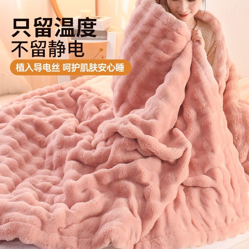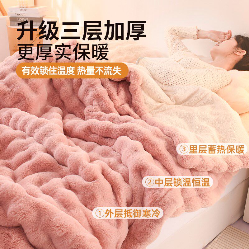 📚 轻奢兔毛绒毛毯秋冬季加绒加厚盖毯沙发午K睡珊瑚绒毯子铺床小被