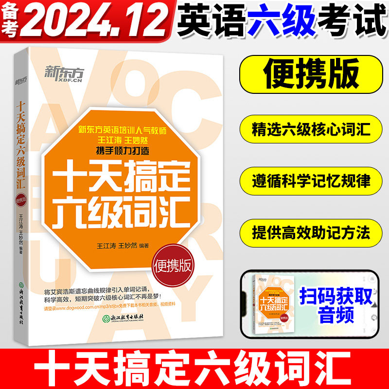 📚 新东方十天搞定六级词汇:便携乱序版 10天6级 cet6 备考2024年12月大学英语考试书籍网课道长 王江涛王妙然 官网