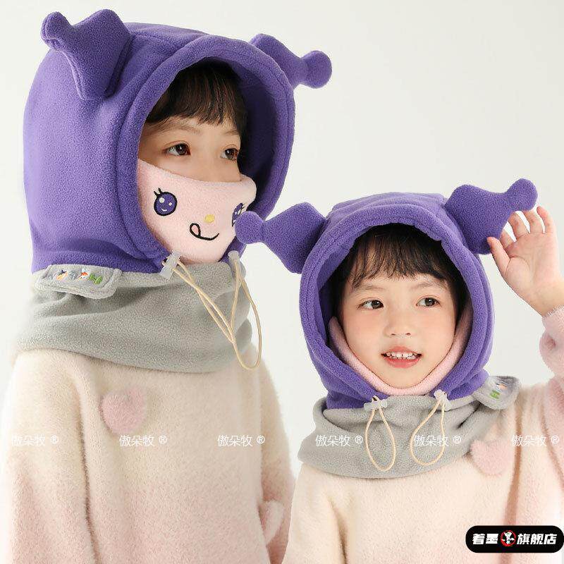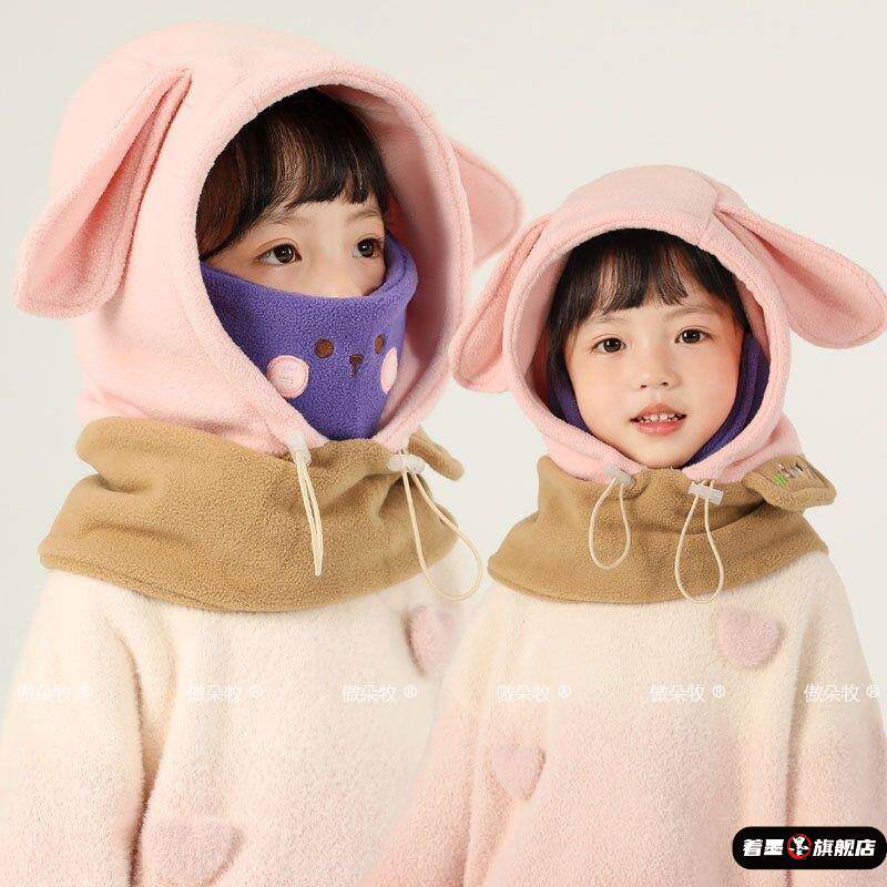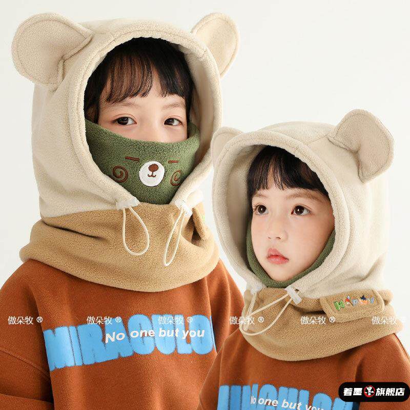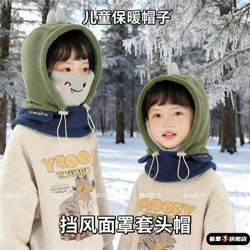 📚 儿童帽子挡风面罩冬天保暖男童护耳帽防风加绒女童套头帽围巾一体
