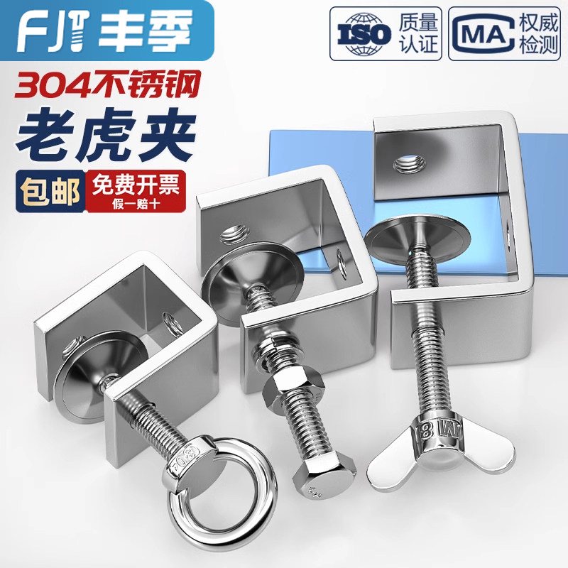 📚 304不锈钢老虎夹子 U型夹 C型夹 钢管方形夹具手拧吊环夹紧器开口