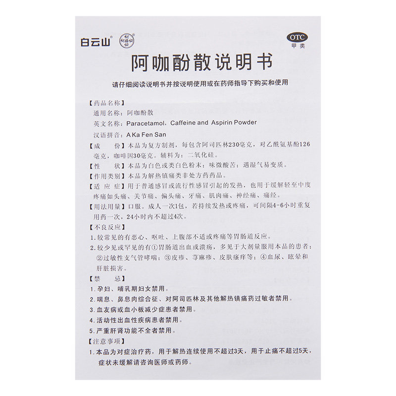 📚 何济公白云山阿咖酚散100包 感冒头痛粉发热经肌肉牙疼流行性感冒