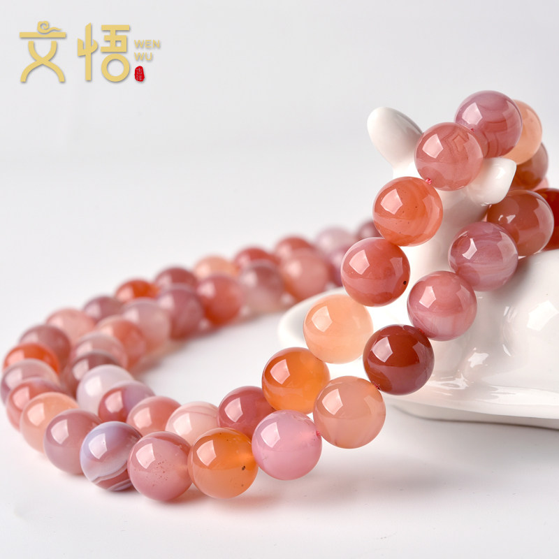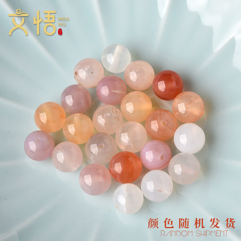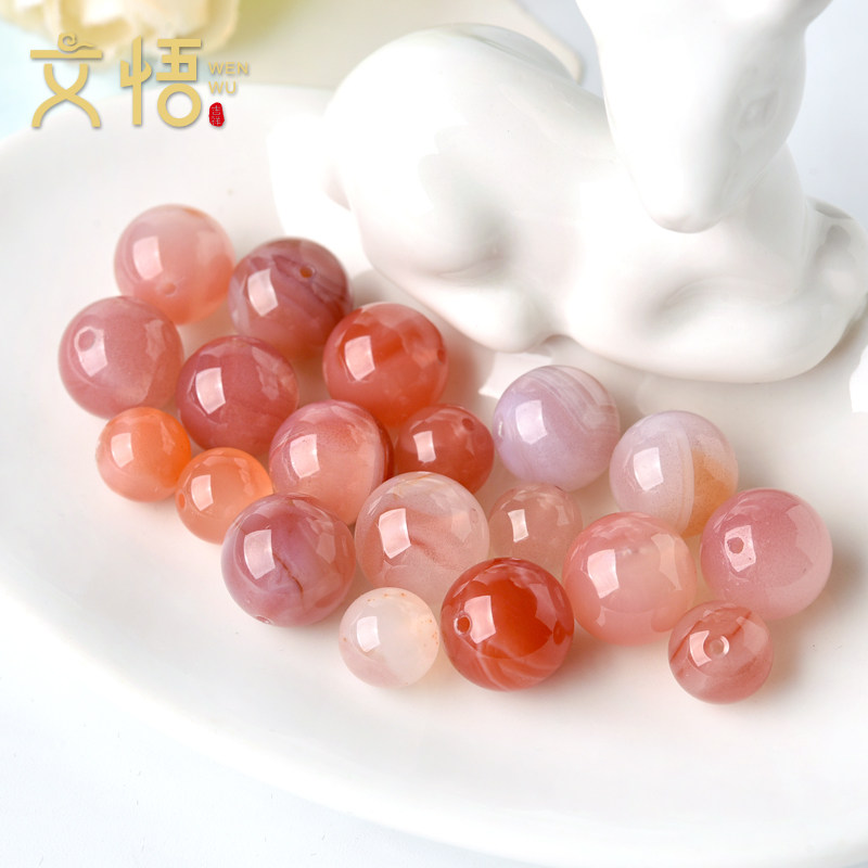 📚 天然粉盐源玛瑙手串散珠子水晶配件糖果玉髓手链diy手工串珠配饰