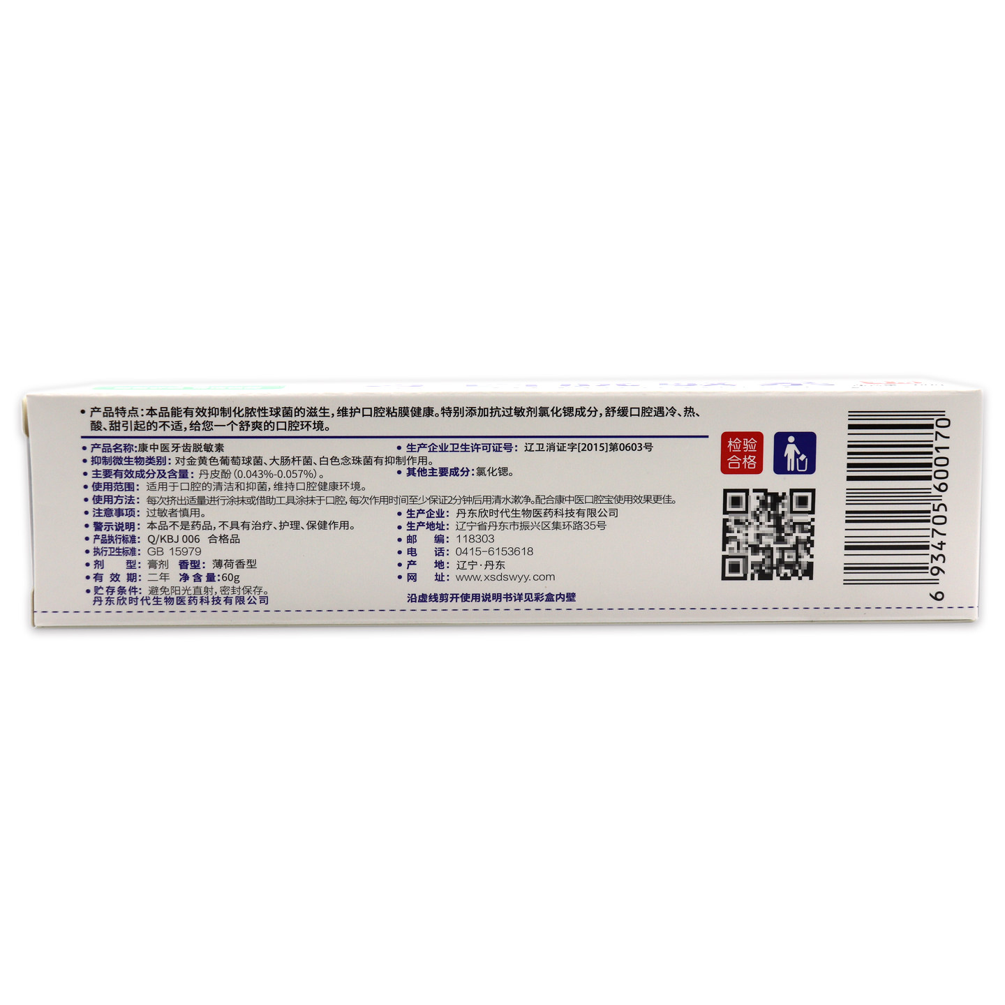 📚 【官方正品】康中医牙齿脱敏素薄荷香型冷热酸甜口腔膏清洁抑菌膏