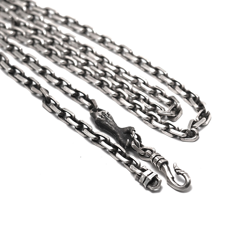 📚 铁心银饰 原创设计项链 925纯银4mm和5mm龙爪链 经典钩式扣男士链