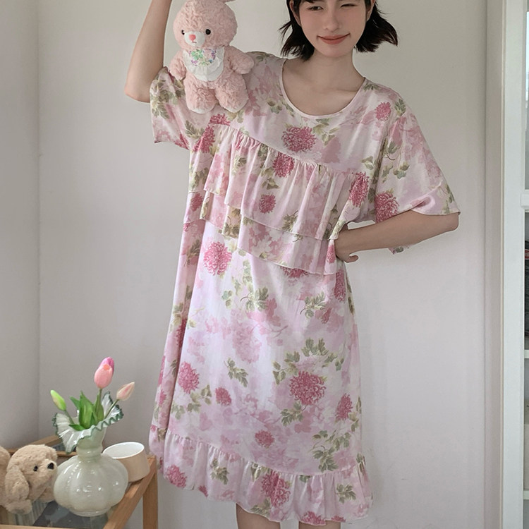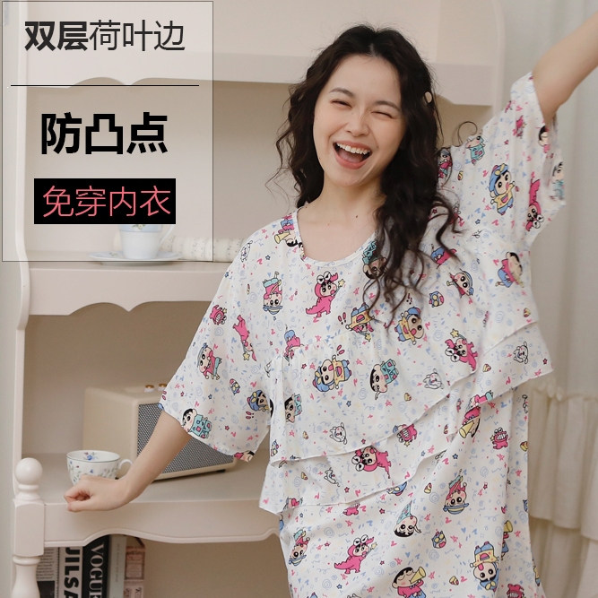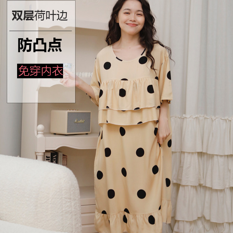 📚 防凸点免穿内衣睡裙女夏季超薄棉绸新款甜美少女连衣裙家居裙睡衣
