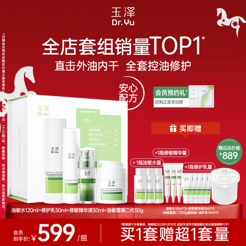 📚 【直播专属礼遇】玉泽皮肤屏障修护水乳霜精华套装敏感肌保湿舒缓
