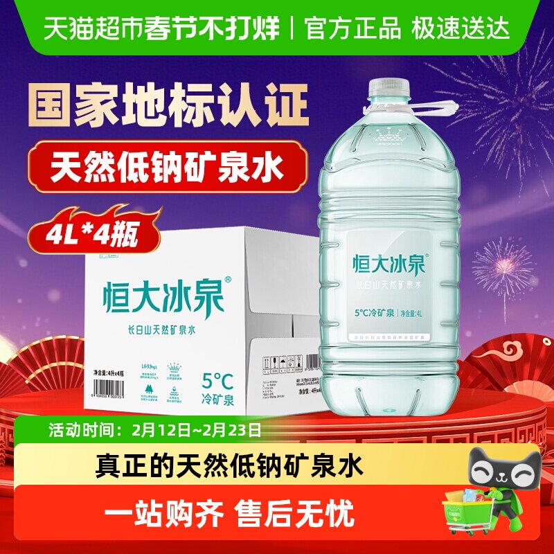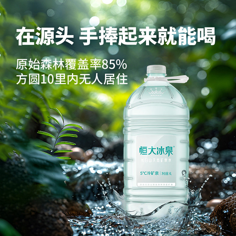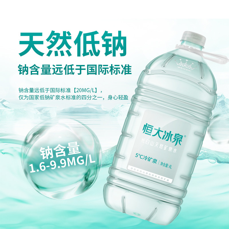 📚 恒大冰泉长白山天然低钠矿泉水4L*4桶大桶装弱碱性水含偏硅酸