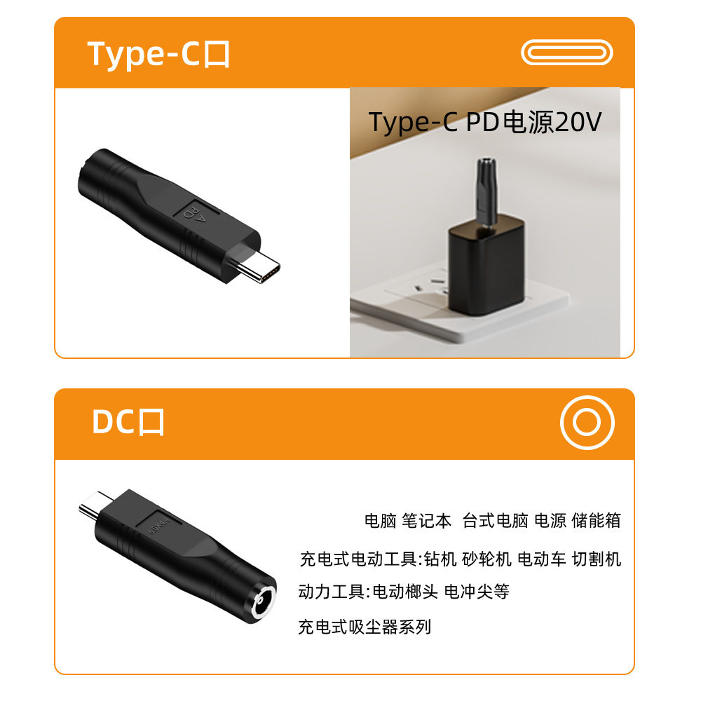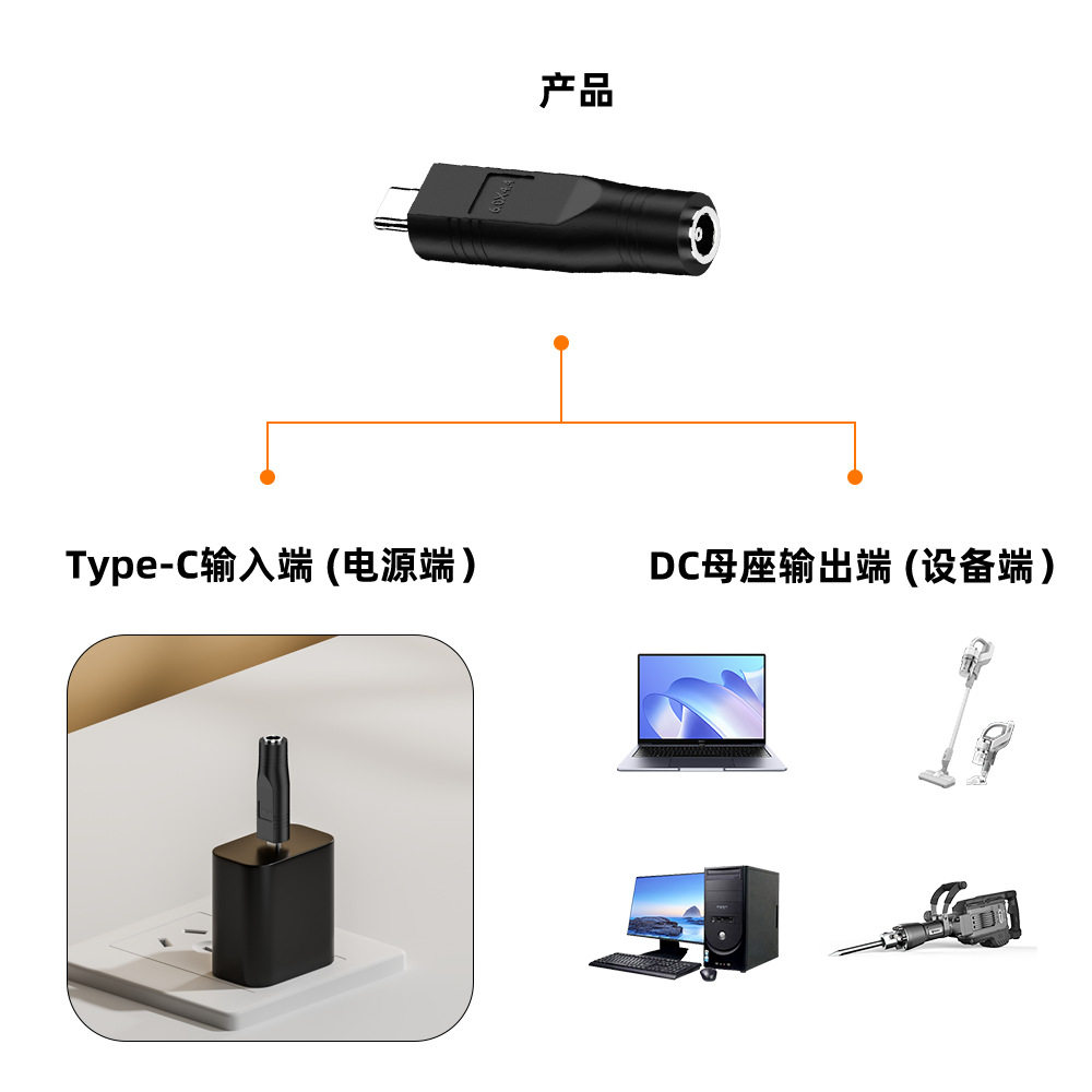 📚 DC母座输出转TYPE公输入笔记本电源转接头PD100W诱骗转换头