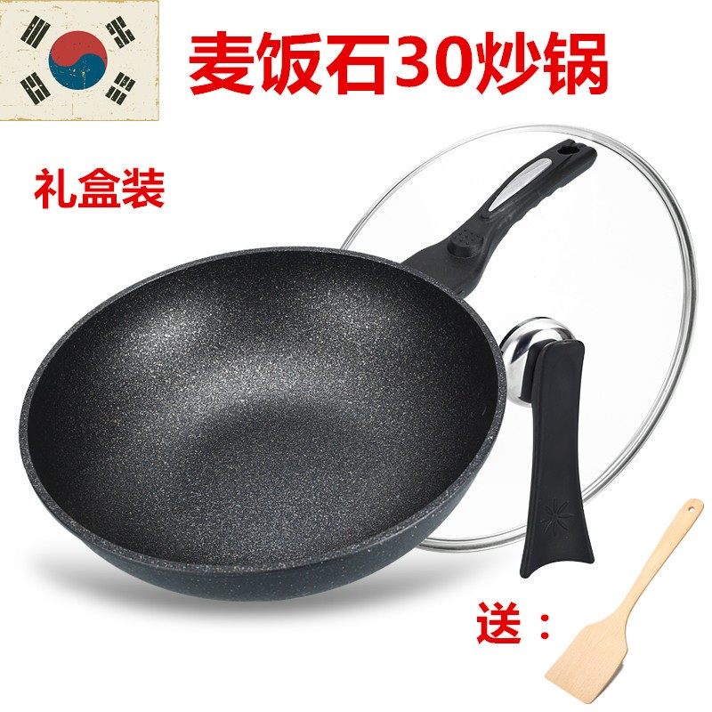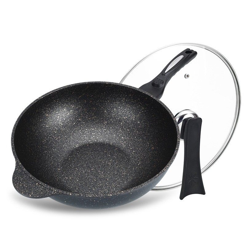 📚 大长今麦饭石炒锅不粘锅无油烟平底压铸养生铝锅炒锅32cm通用锅具