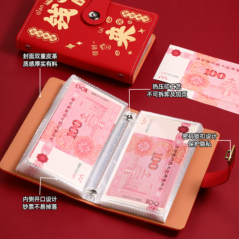 📚 来财暴富存钱本存钱夹钱册2025年新款现金存钱本收纳包存钱包存钱神器钱收纳册密码锁钱包装钱专用袋百元钞票