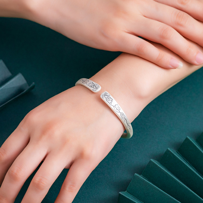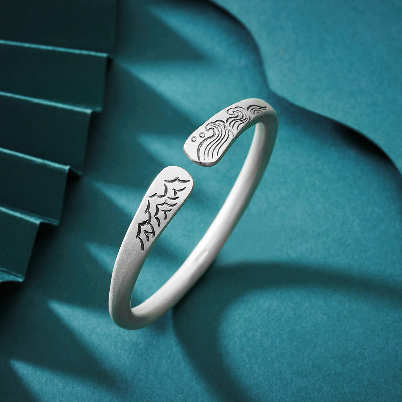 📚 如意山海银手镯999纯银古法银手镯女手工开口足银定制镯子送女友