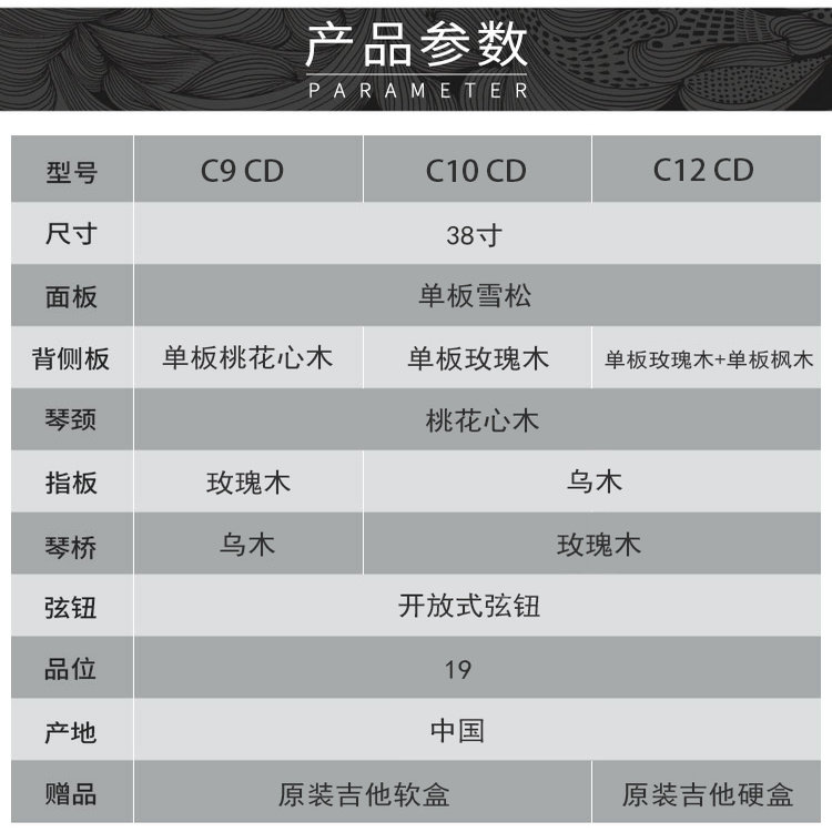 38¥ MF287 TFg9URFDomc¥ https://m.tb.cn/h.7IsgYcH Cordoba科多巴 C9 CD/SP全单板专业古典吉他红松白松实木38寸原装 --------------------- 【原售价】7,280元 【现售价】7,280元。
