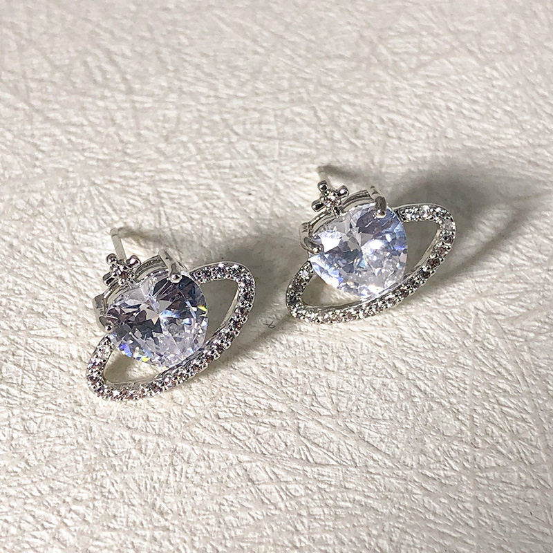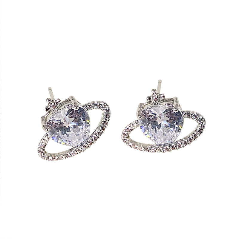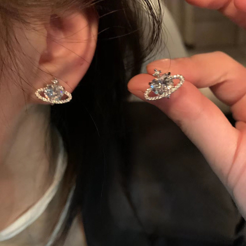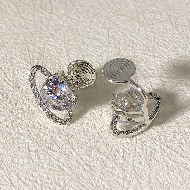📚 小众设计感锆石星球行星环蚊香盘耳夹无耳洞夏季清新甜美耳饰女