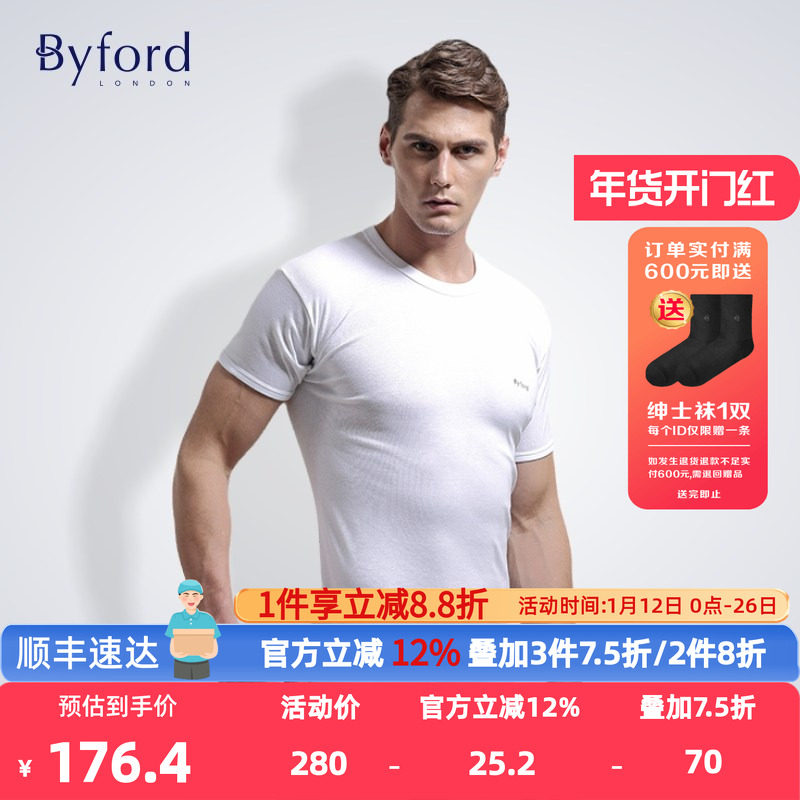 📚 byford百富男士纯棉短袖T恤透气舒适打底衫商务休闲上衣MW8824