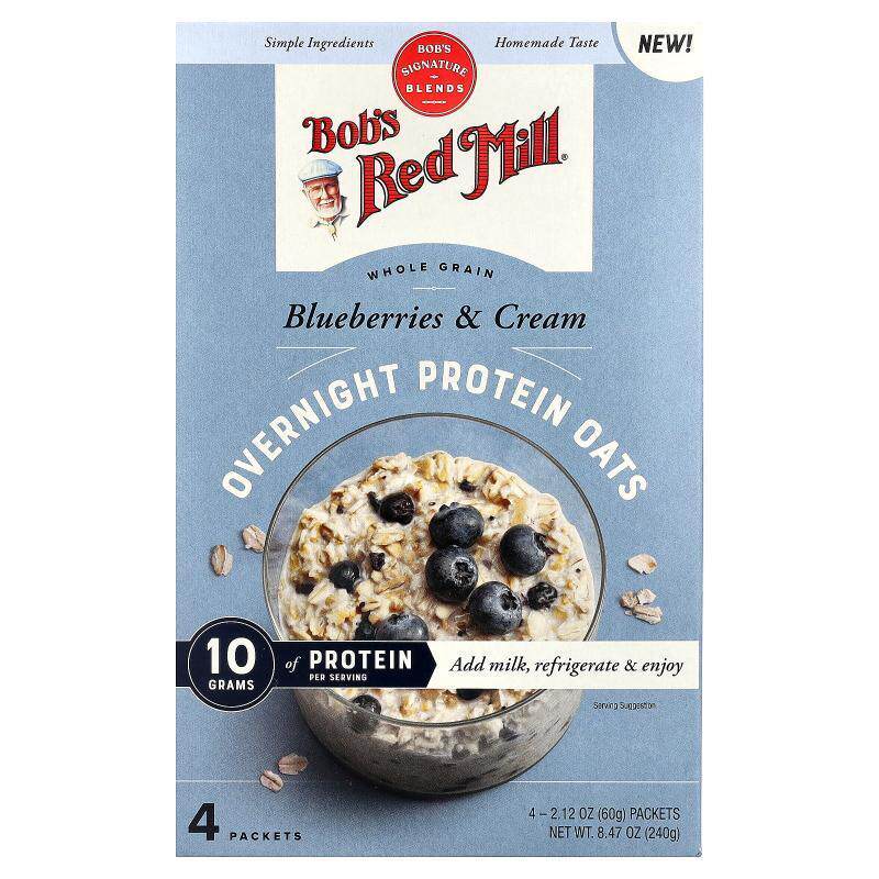 📚 鲍勃红磨坊,Overnight Protein Oats, Whole Grain, Blueberries