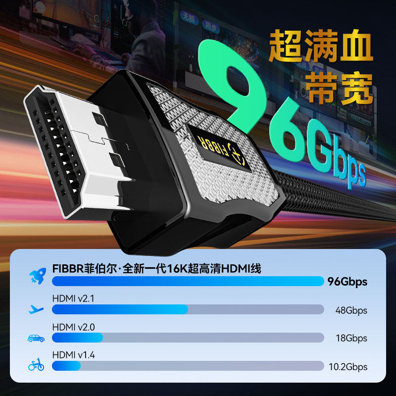 📚 FIBBR菲伯尔镀银HDMI2.2线16K超高清96Gbps带宽4K240Hz无损传输