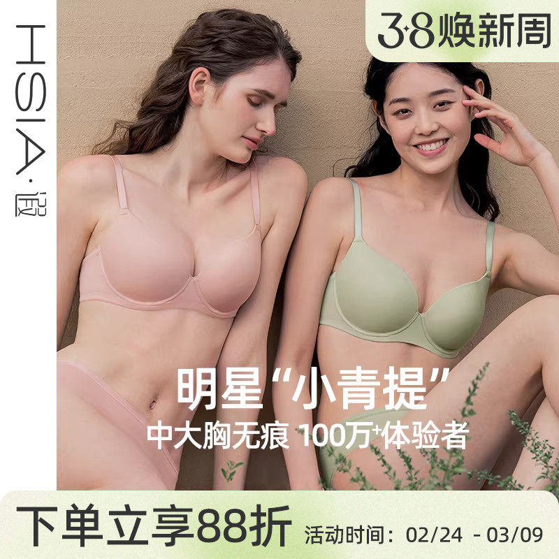📚 遐【小青提】无痕内衣女薄款新光面上托微聚拢全罩杯大胸显小文胸