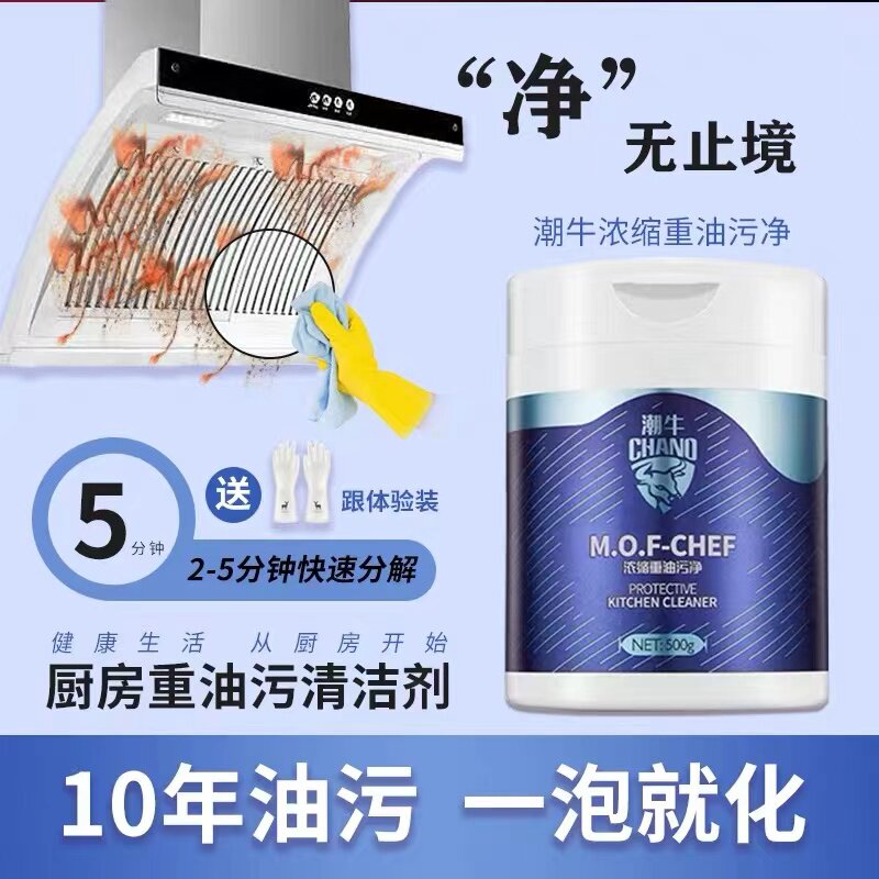 📚 正品潮牛浓缩厨房重油污粉水剂强力洗油烟机不锈钢锅底黑垢清洁剂