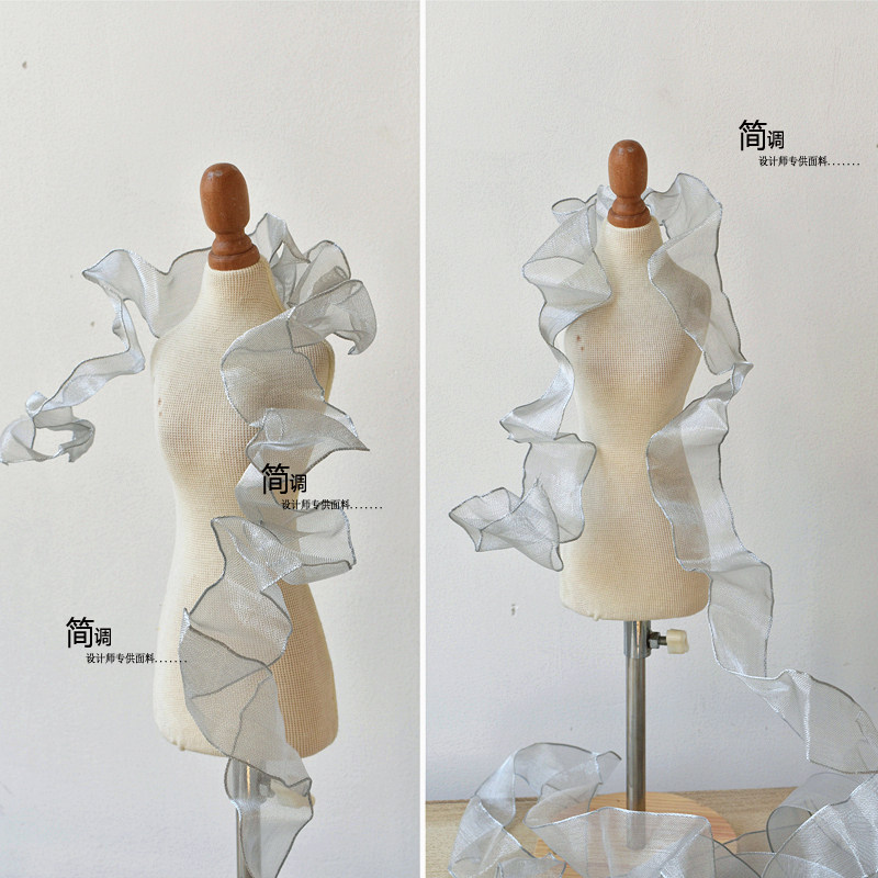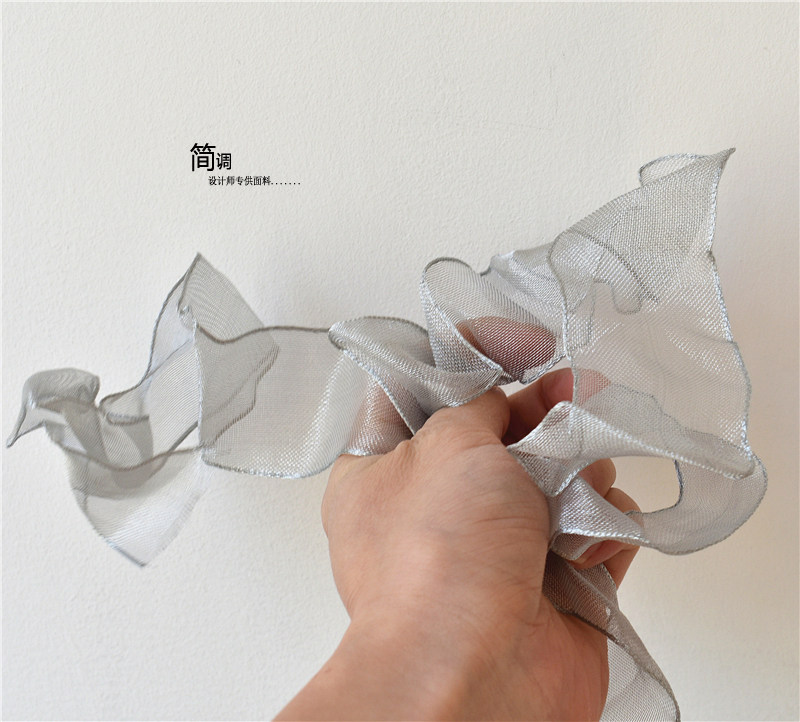 📚 银灰色网纱透明塑性钢丝花边辅料欧根纱娃衣手工婚庆装饰飘带布料