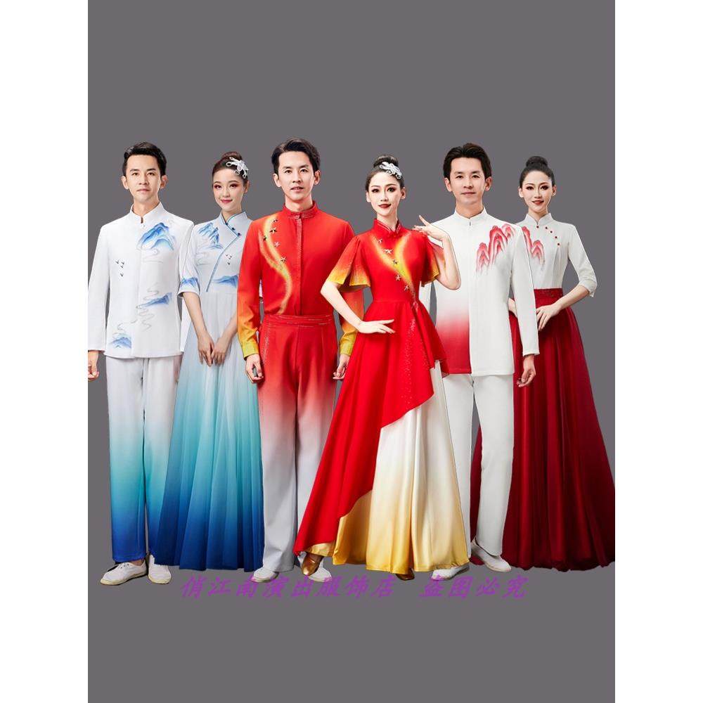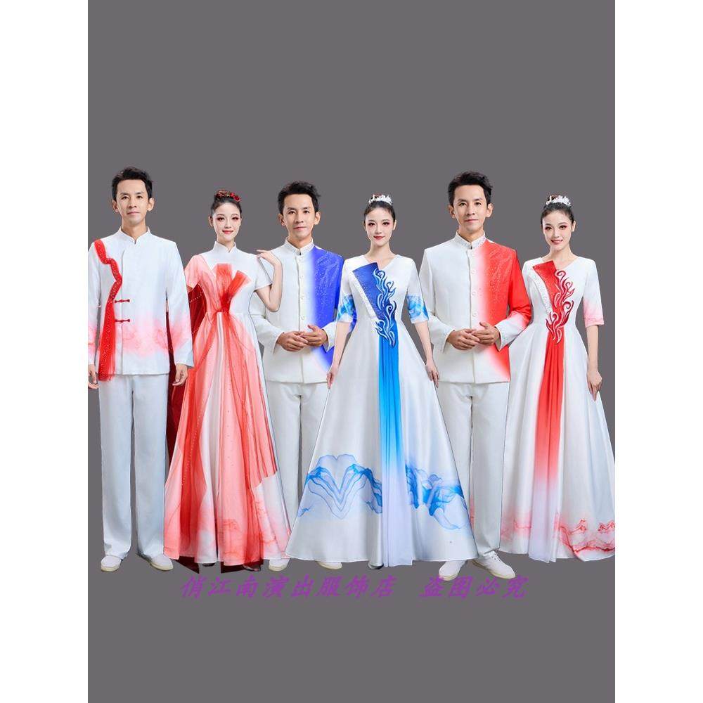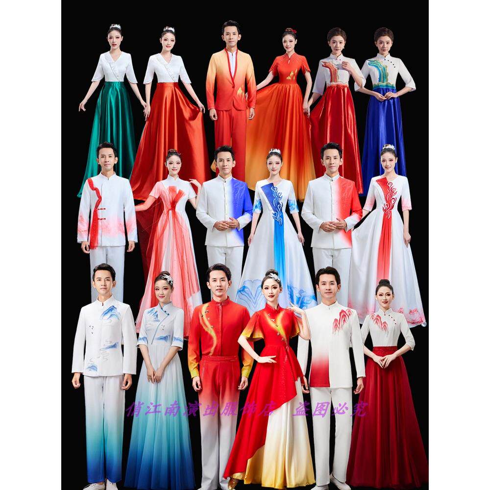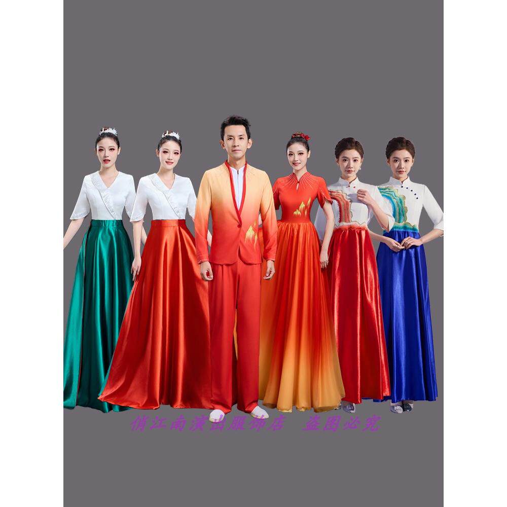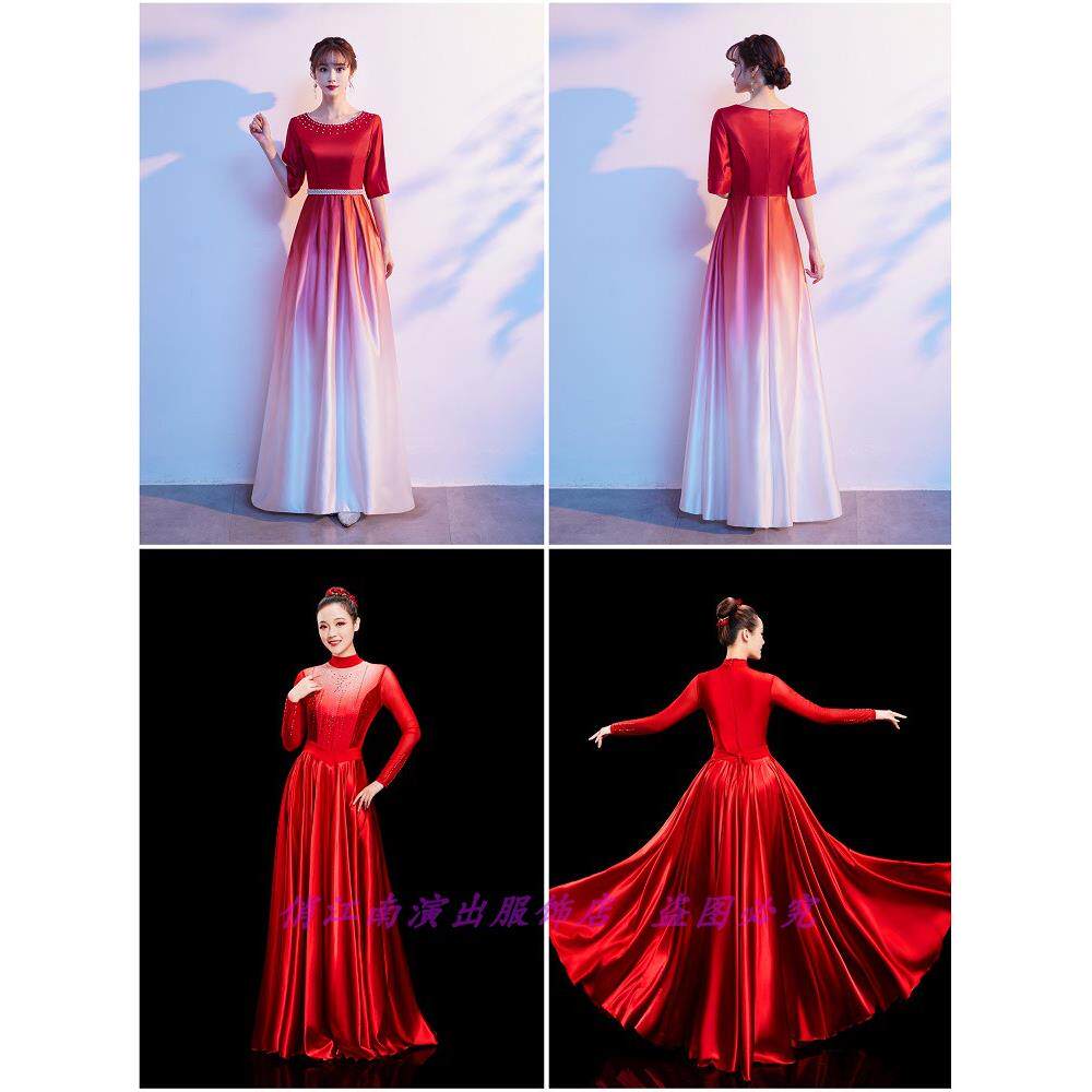 📚 红歌大合唱礼服长裙表演服装映山红江山灯火里的中国上河图旗帜颂