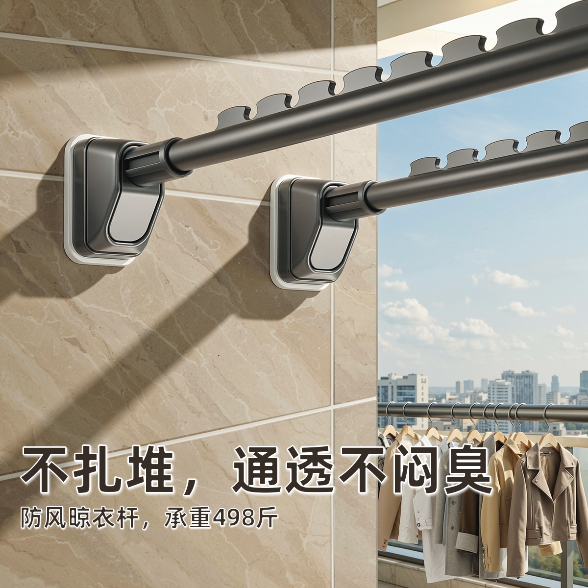 📚 侧装晾衣架防风墙上挂衣架免打孔晾衣杆不锈钢一整根固定飘窗神器