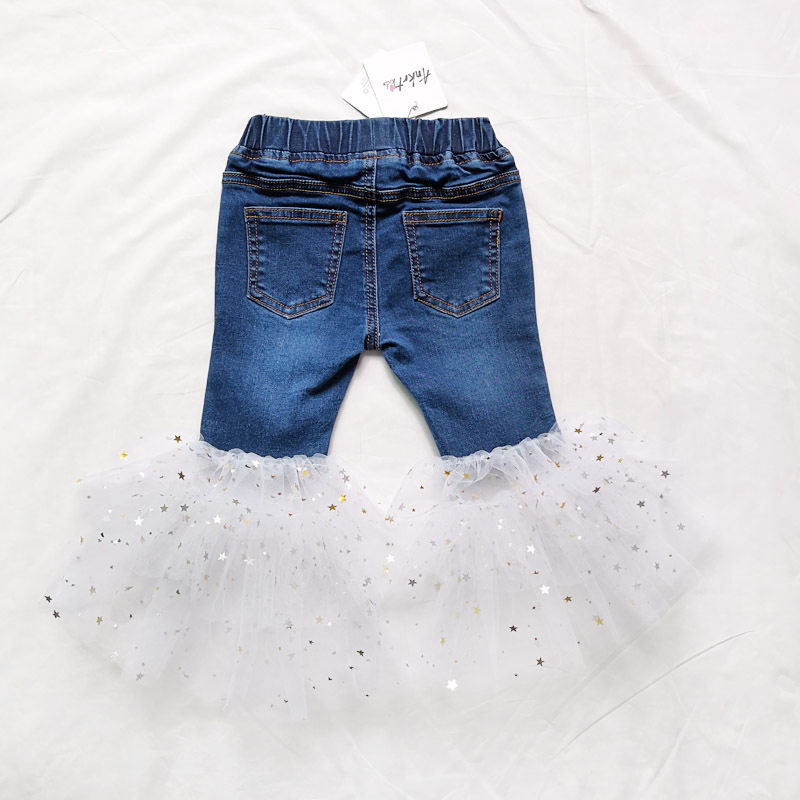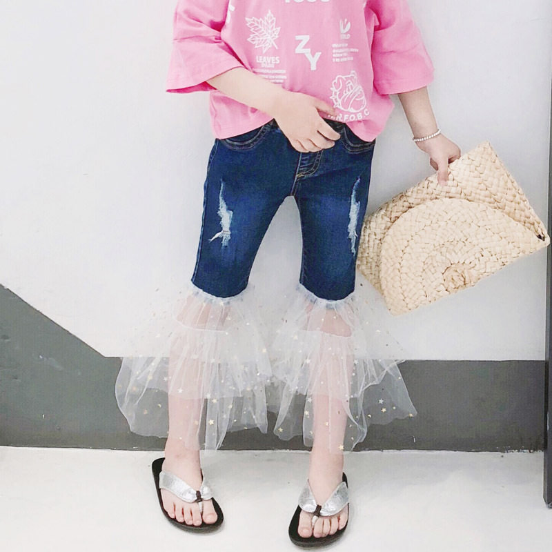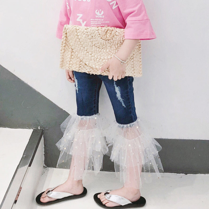 📚 INS 童装新款夏季女童网纱宝宝牛仔喇叭裙裤重工BLING闪裤子66