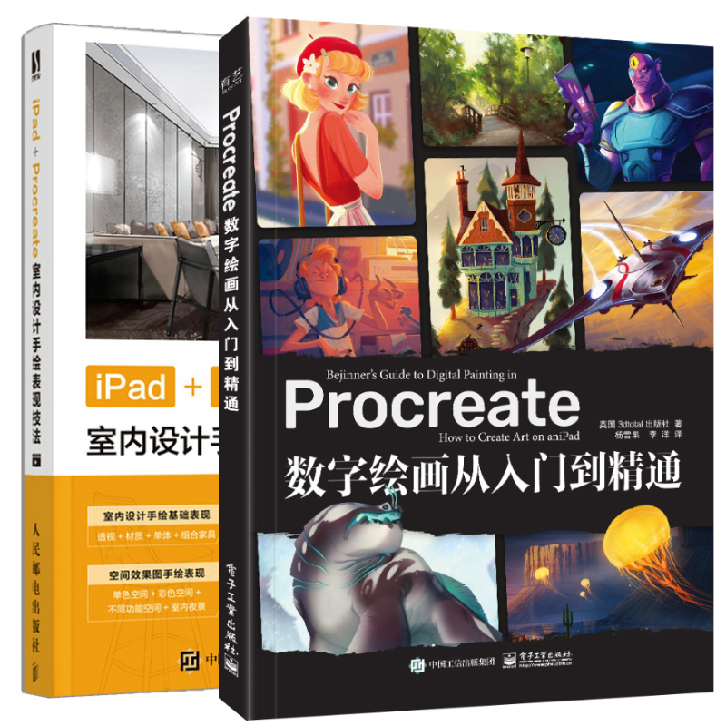 📚 iPad+Procreate室内设计手绘表现技法+Procreate数字绘画从入门到通 Procreate进行动画角色和商业插画创作方法技巧板绘教程书