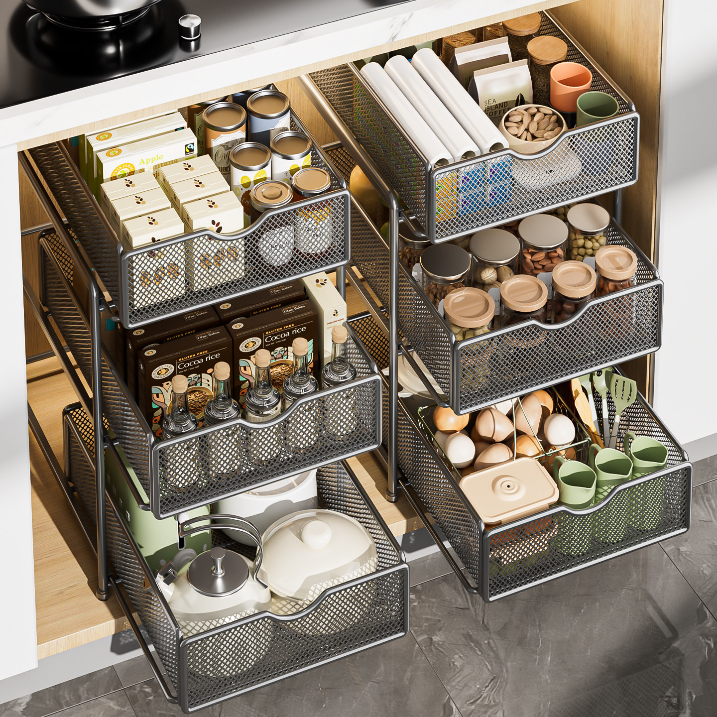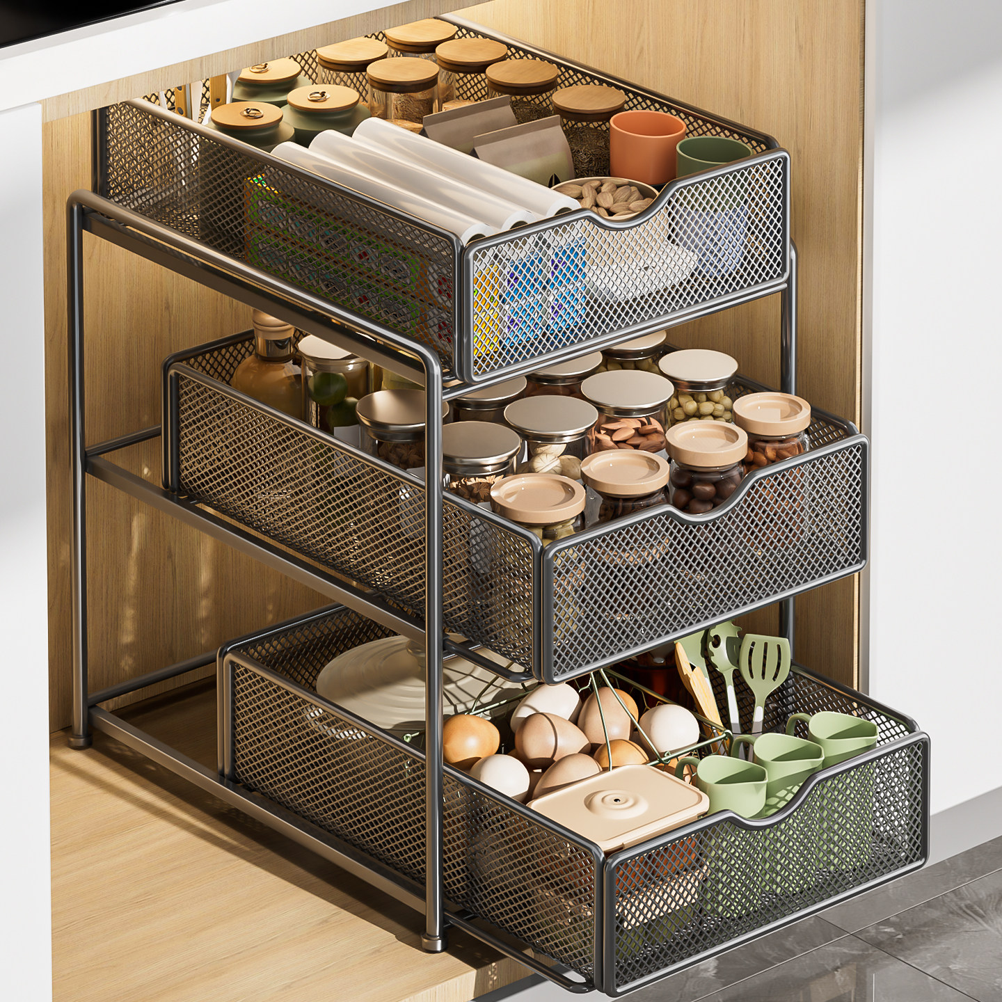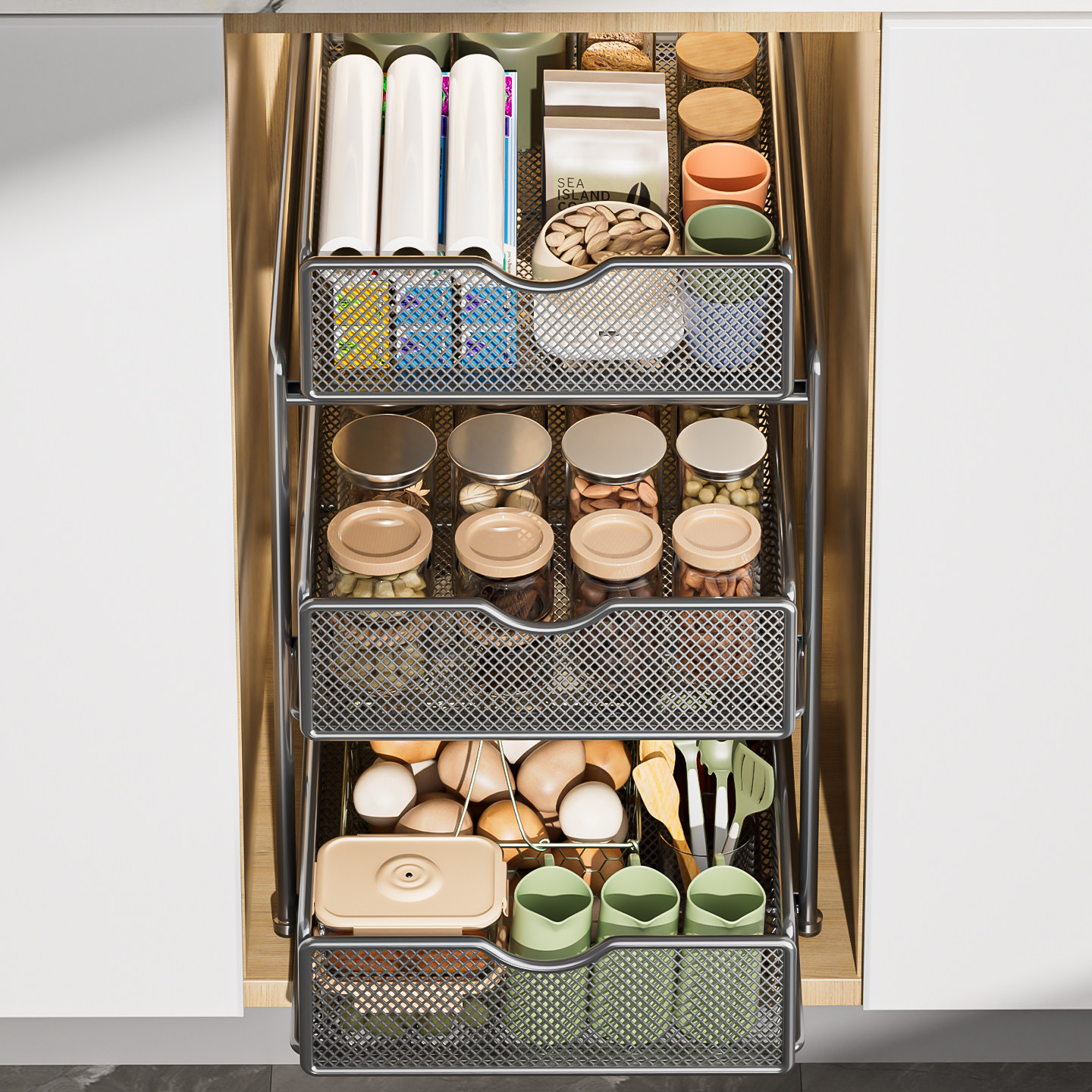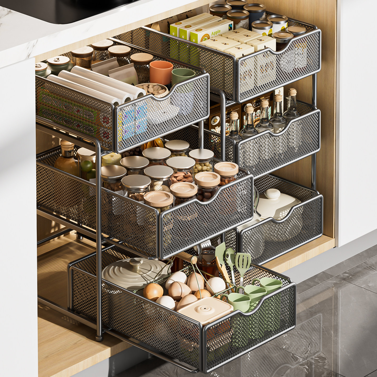 📚 厨房抽屉置物架橱柜内抽拉式多功能分层架下水槽超深拉篮收纳神器