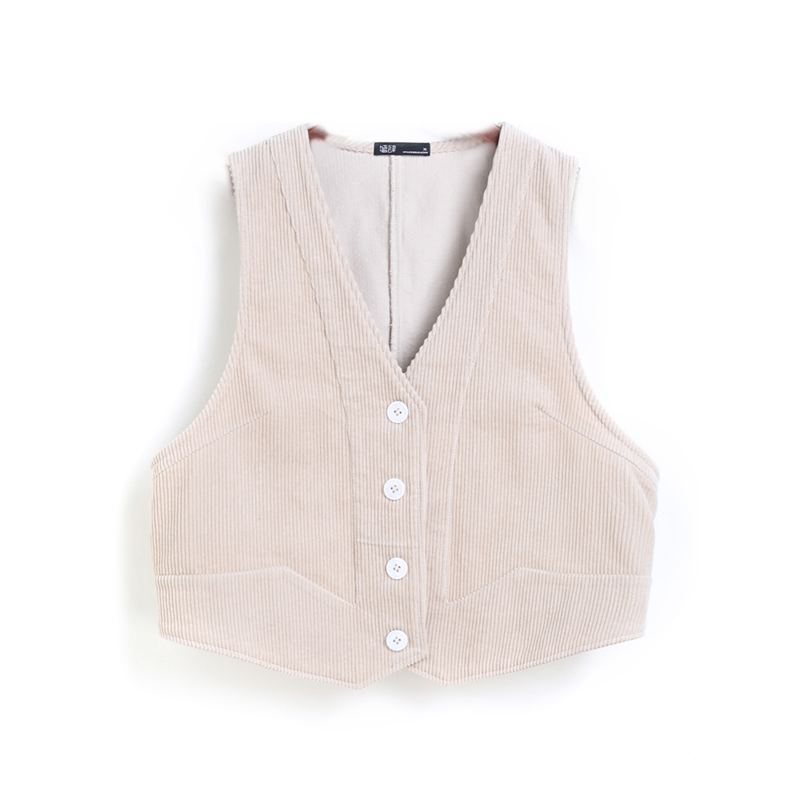 📚 原创米白灯芯绒马甲女士背心条绒复古V领西部牛仔马夹