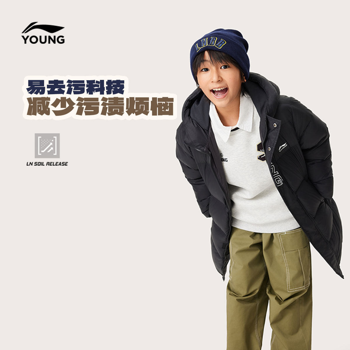 📚 李宁儿童中长款羽绒服男孩新款冬季男童装女外套青少年防泼水冬装