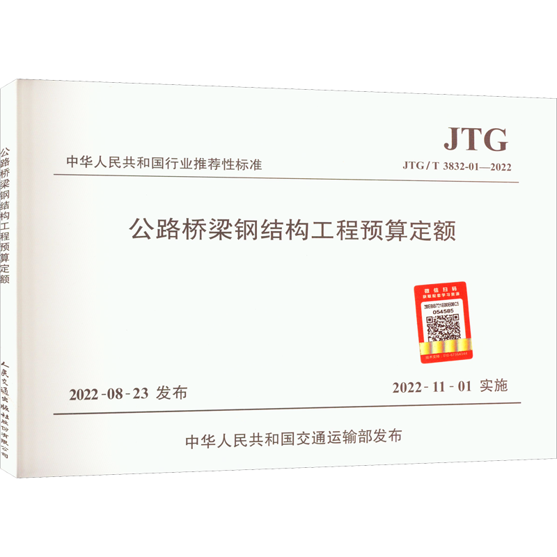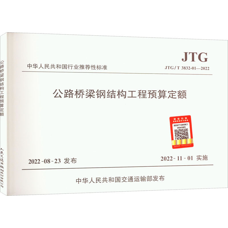 📚 公路桥梁钢结构工程预算定额 JTG/T 3832-01—2022 计量标准 专业科技 人民交通出版社股份有限公司JTG/T 3832-01—2022