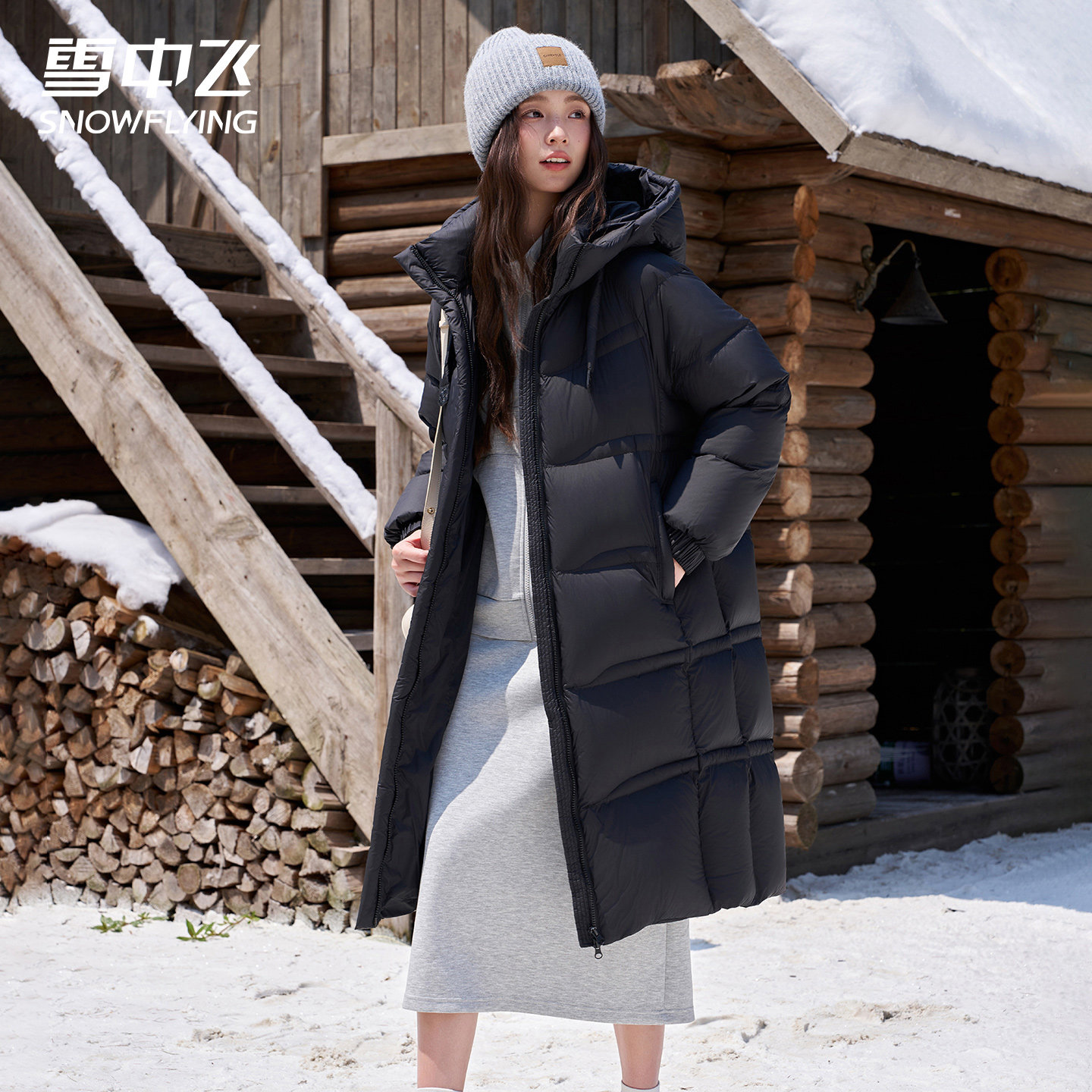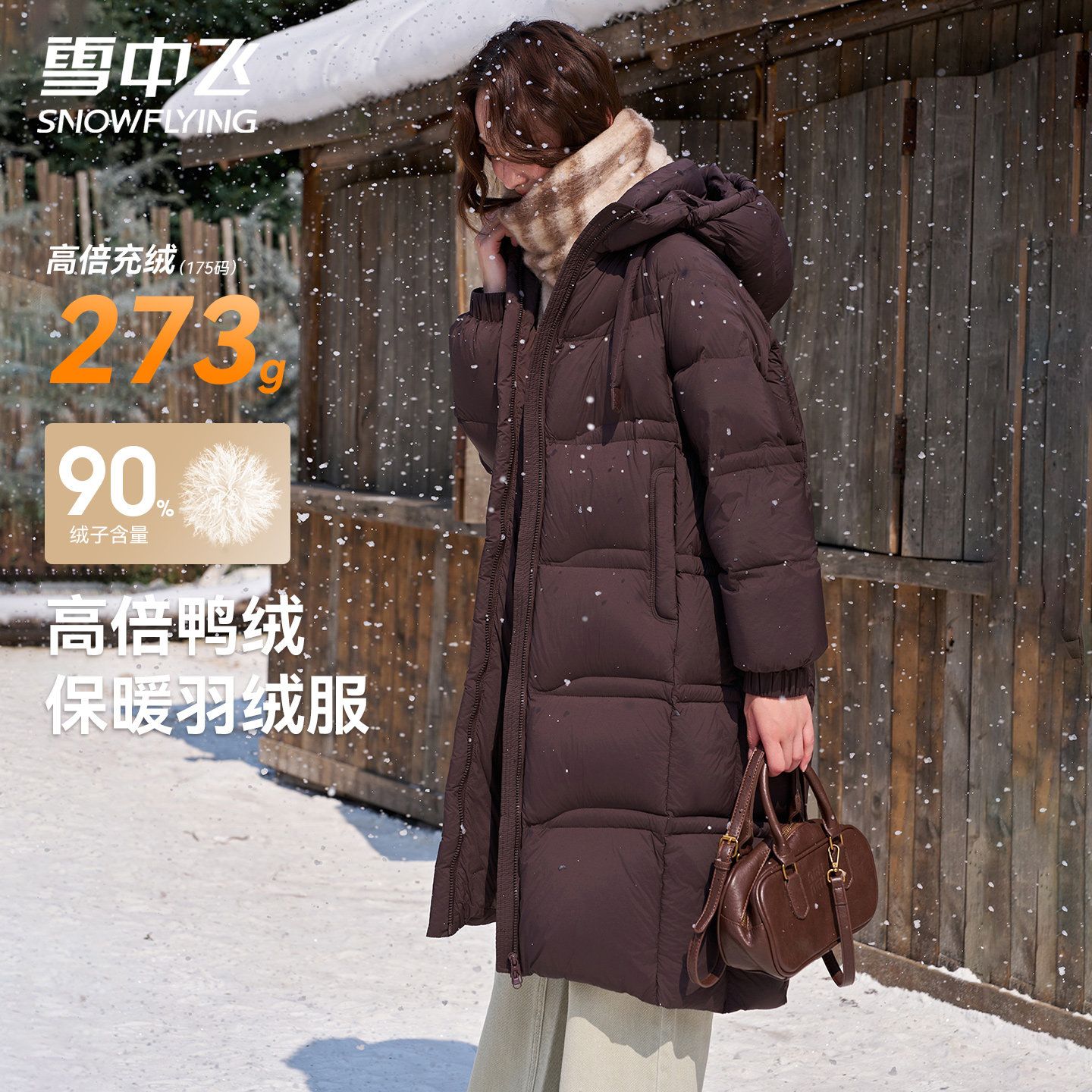 📚 雪中飞长款过膝羽绒服女2025冬季新款连帽保暖加厚黑色外套面包服