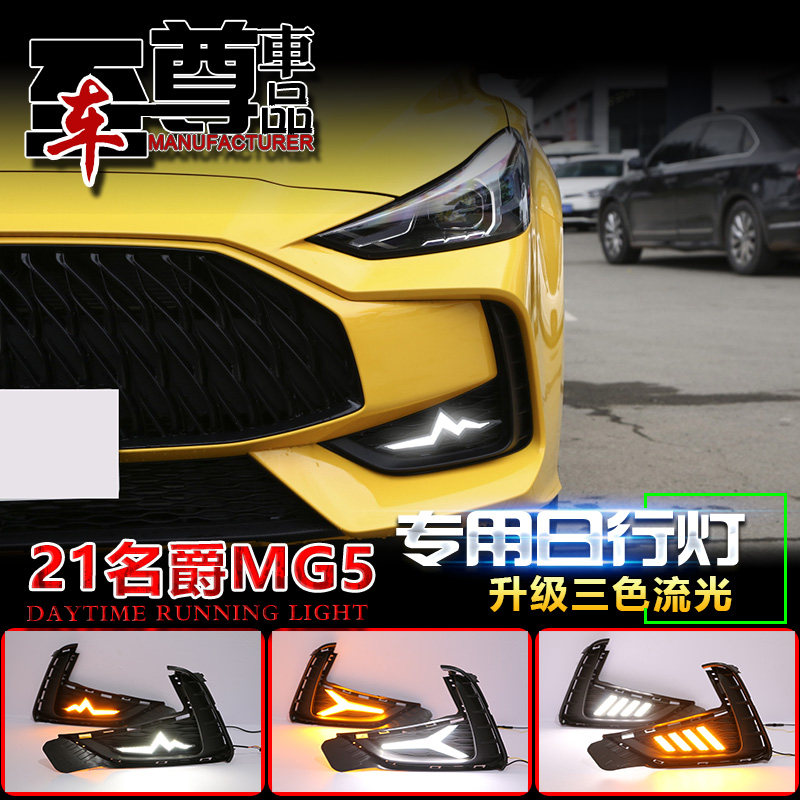 📚 21款名爵5日行灯前雾灯MG5专用改装LED日间行车灯流光转向行车灯