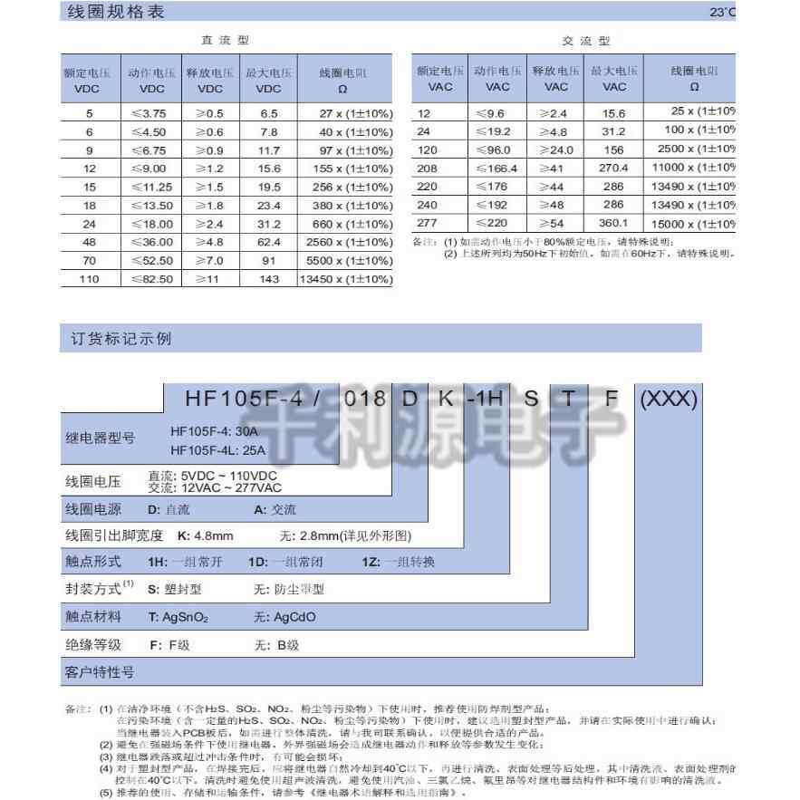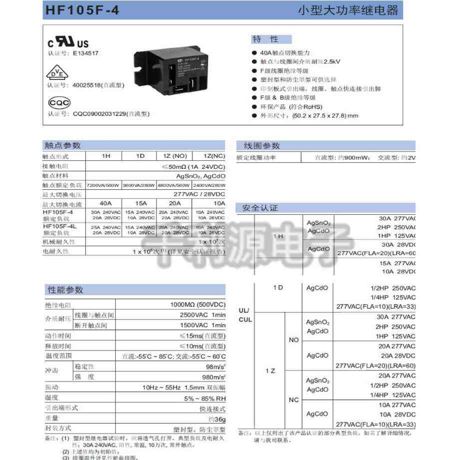 📚 HF-JQX-105F-4-012D-220A-1HS 一组常开 4脚 30A 220V空调继电器