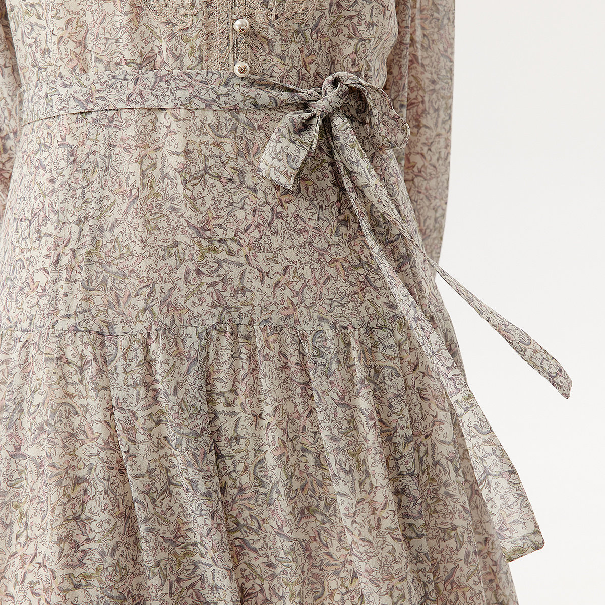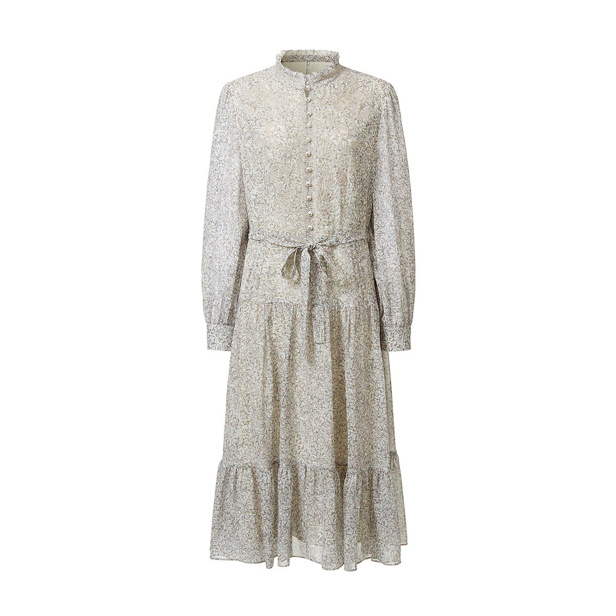 📚 VGRASS维格娜丝春季新款定位印花叠绣真丝乔其连衣裙法式蛋糕长裙