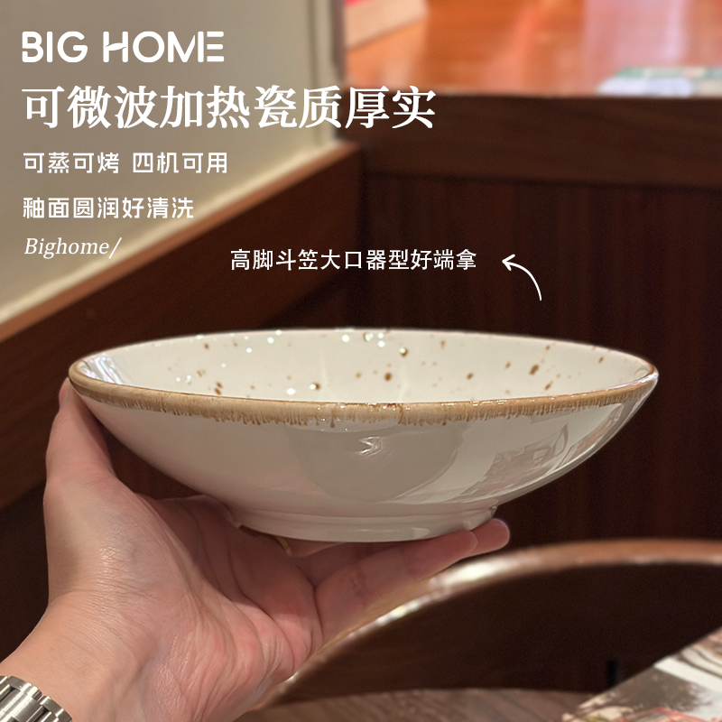 📚 德士敦7寸浅汤碗釉下彩耐高温斗笠碗吃面嗦粉拉面碗蒸菜碗沙拉碗