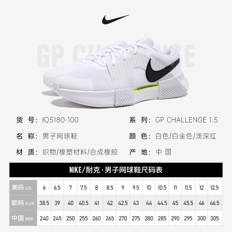 📚 Nike耐克辛纳网球鞋男子26WIM温网ZOOM GP CHALLENGE 1.5 IQ5180