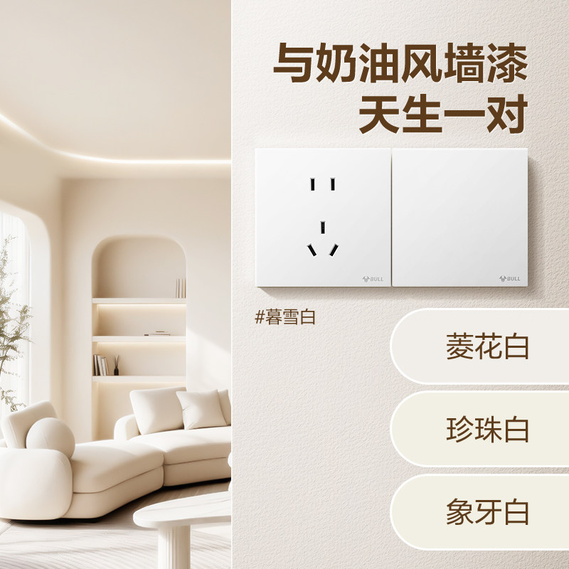 📚 公牛蝶翼超薄G57开关五孔插座16a大师面板哑光奶油风墙壁暮雪白