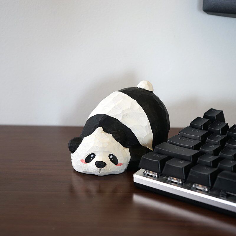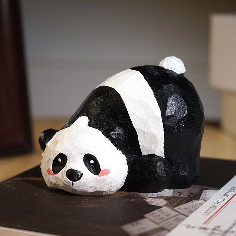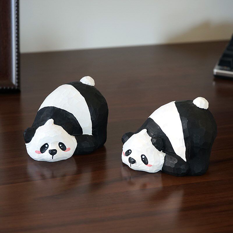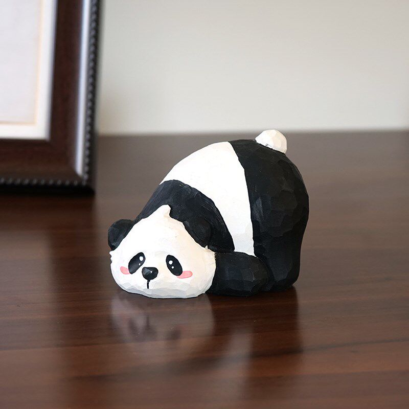 📚 趴趴慵懒大熊猫手工木雕治学件木头雕刻小愈系可爱书桌送摆生礼物