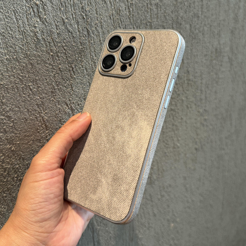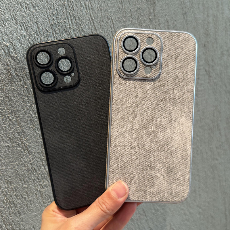 📚 牛仔皮纹适用iPhone15Promax手机壳苹果14肤感防摔13自带镜头膜12高级