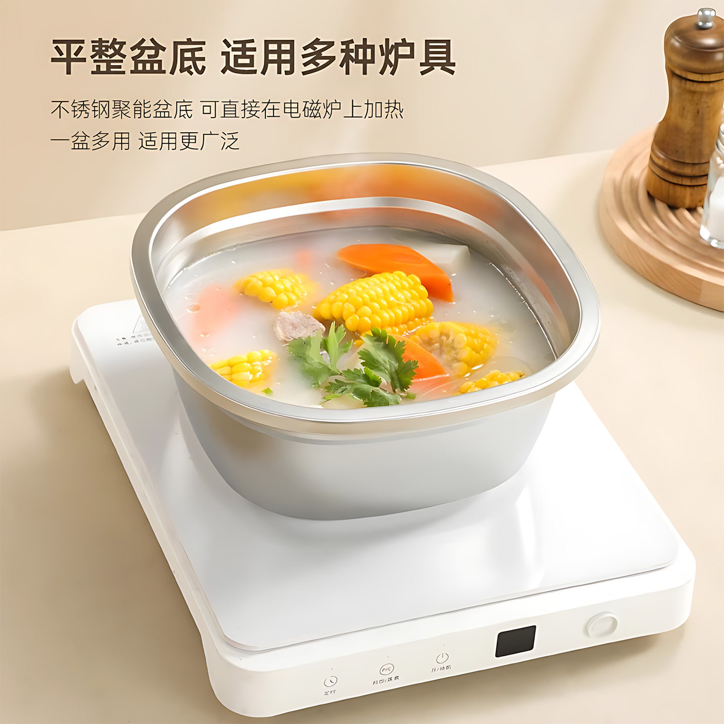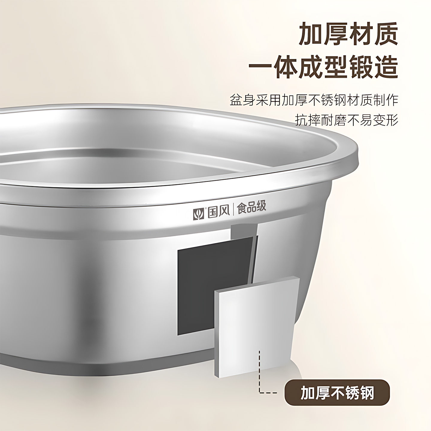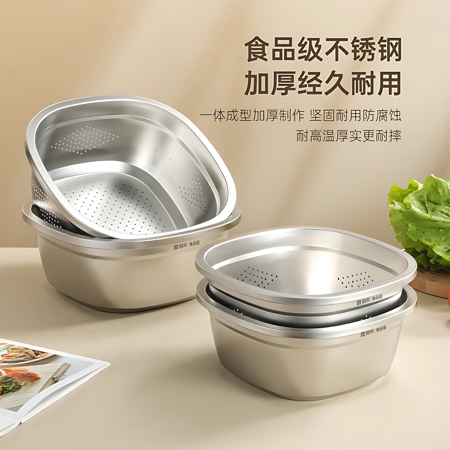 📚 国风不锈钢方盆正方形漏盆套装和面冲孔筐滤水篮米筛沥水篮洗菜盆