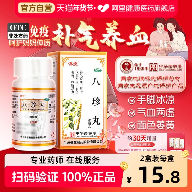 📚 佛慈八珍丸养血女士女生正品气血两虚补气补血调理贫血补气血官方